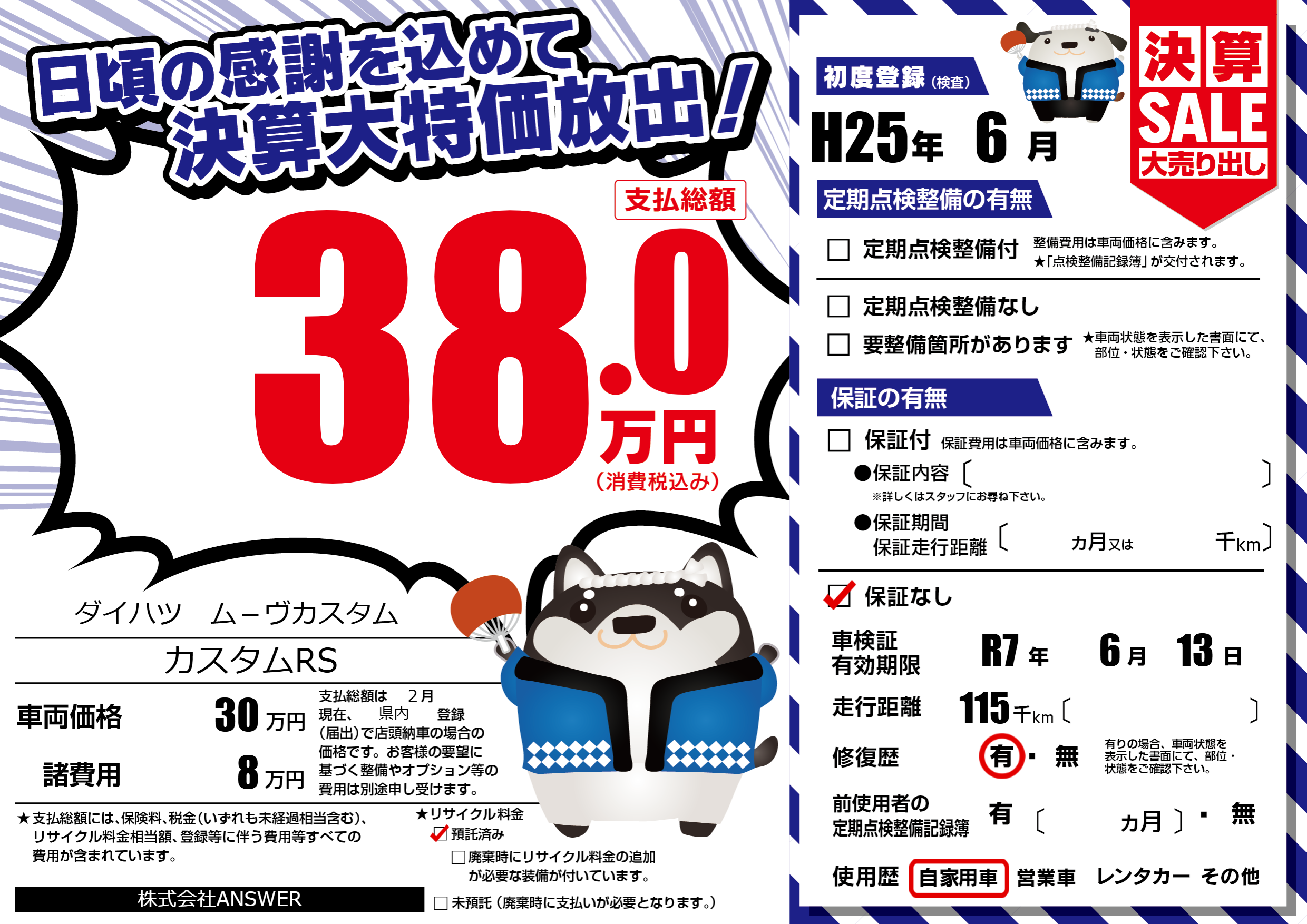 | 車検制限 | R7年 6月 13日 | ||