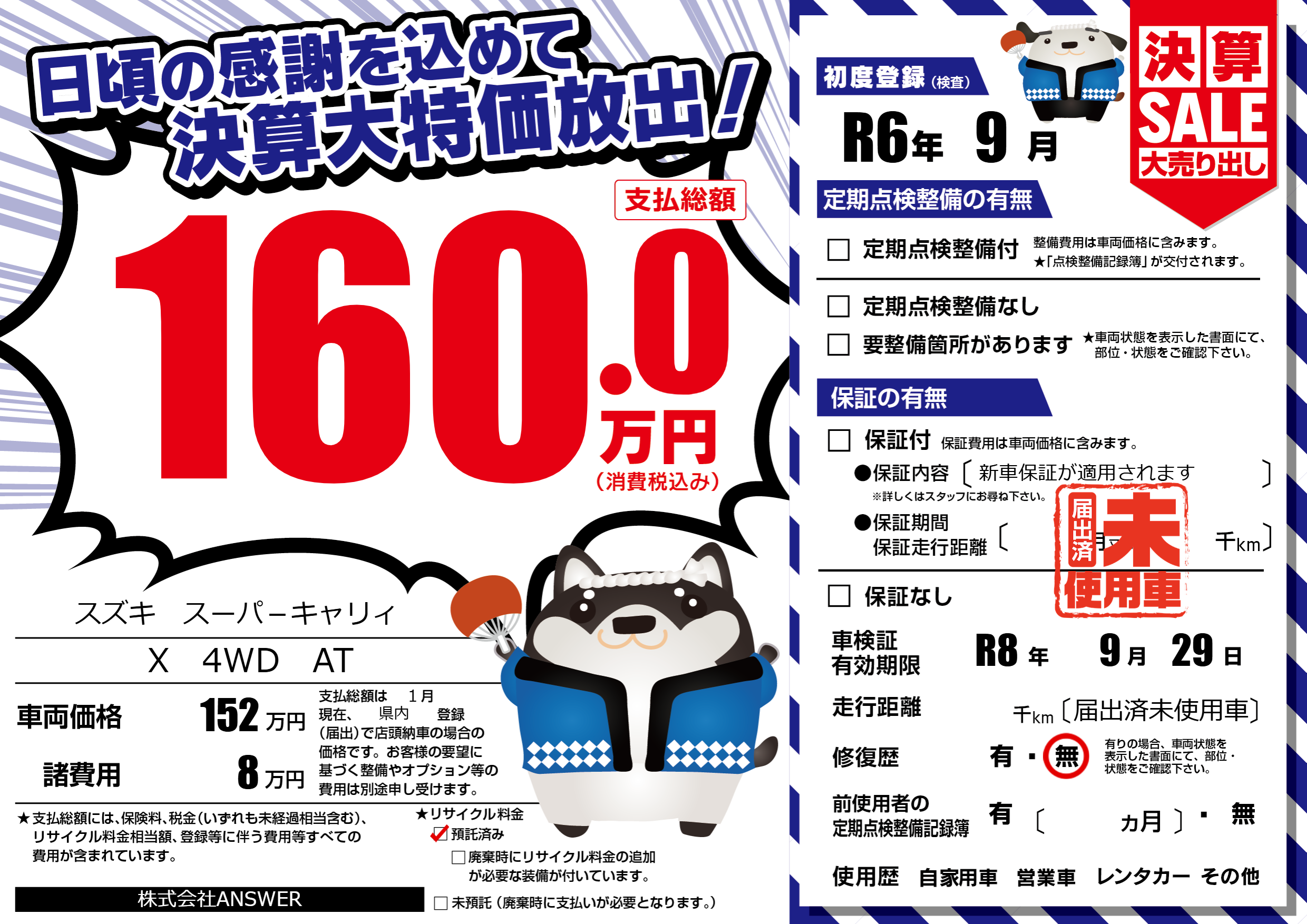 | 走行キロ | - | 初年度登録 | R6年9月 |