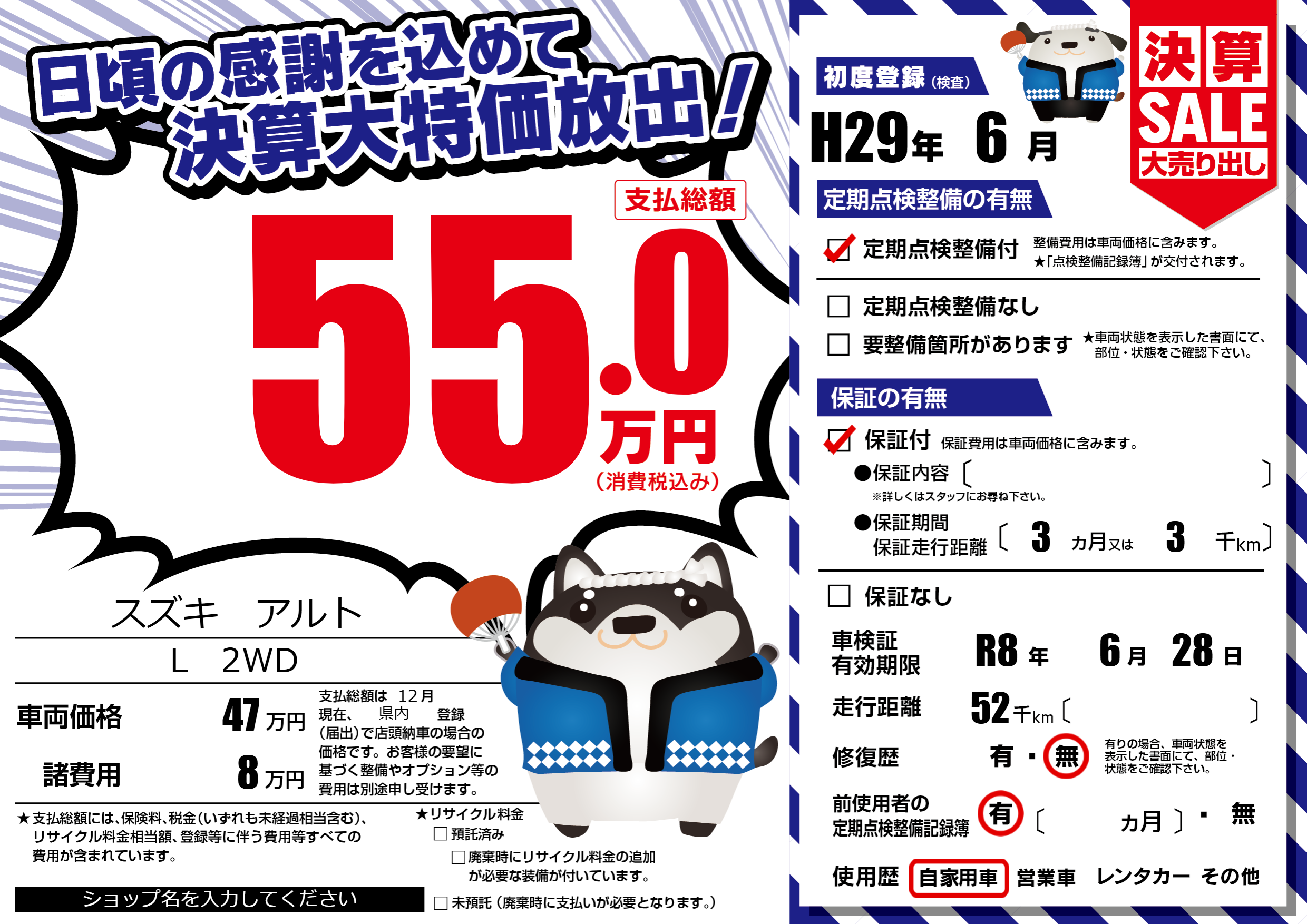| 車検制限 | R8年 6月 28日 | ||