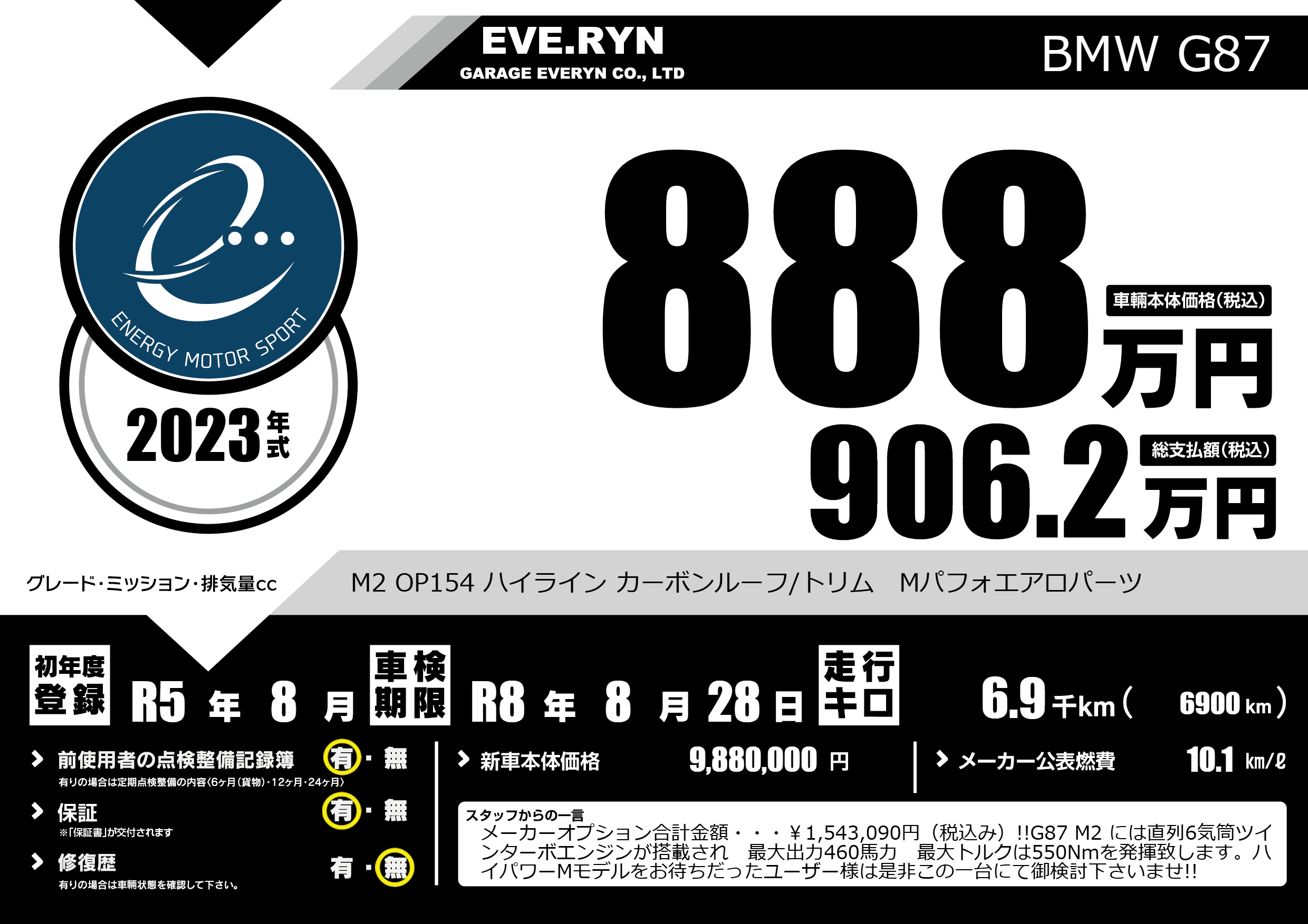 | 車名 | BMW G87 | グレード ミッション 排気量 |