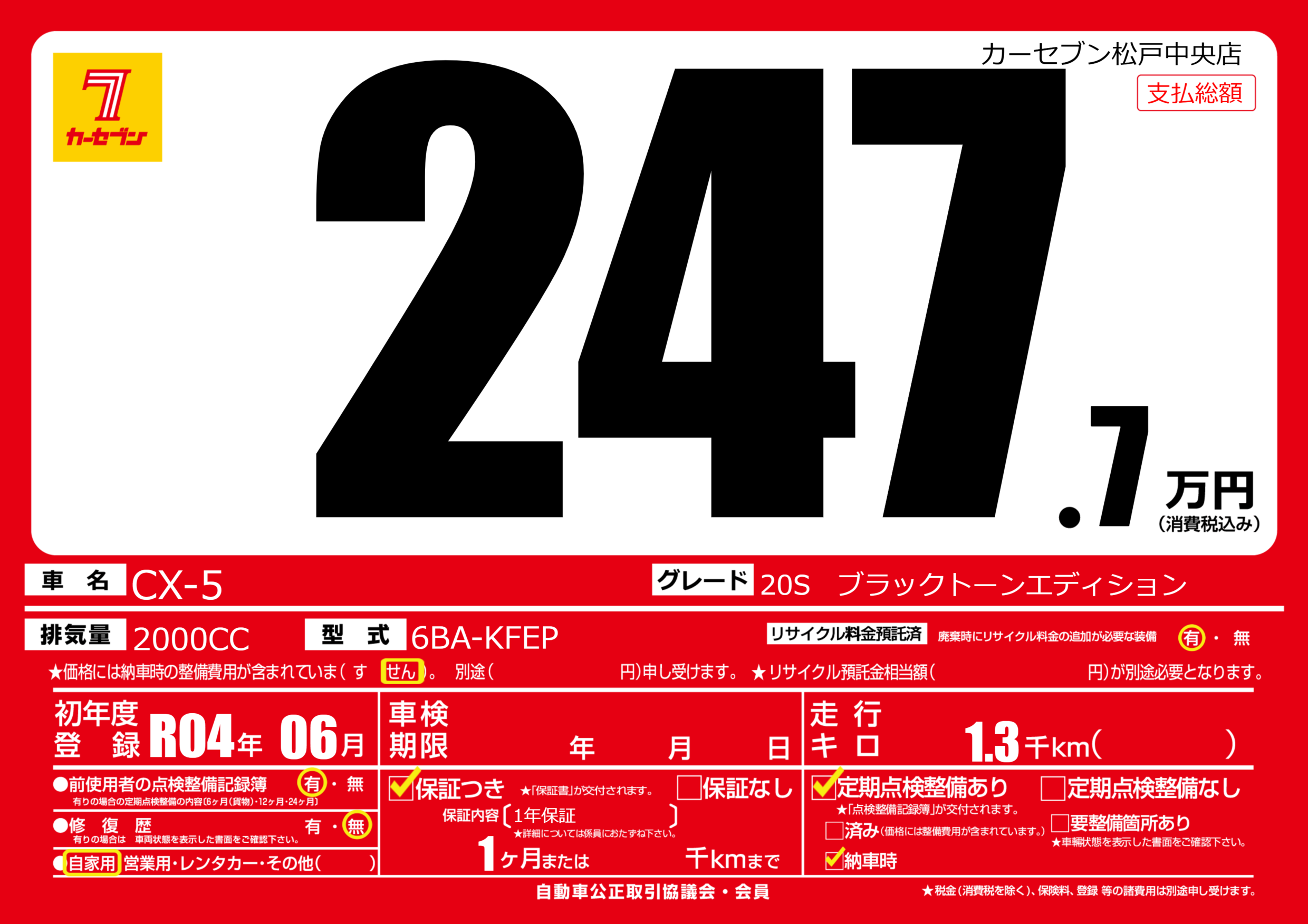 | 車名 | CX-5 | グレード ミッション 排気量 |