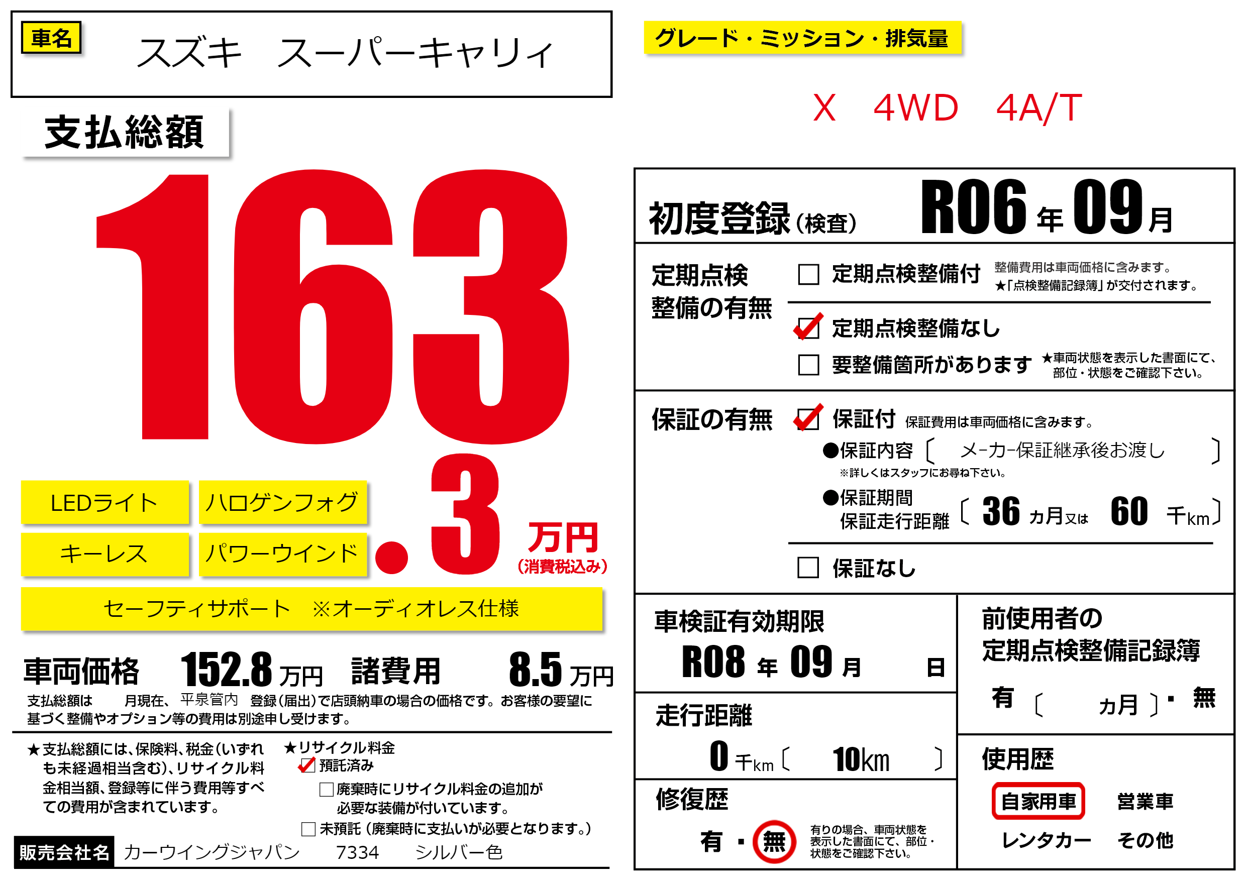 | 走行キロ | - | 初年度登録 | R06年09月 |