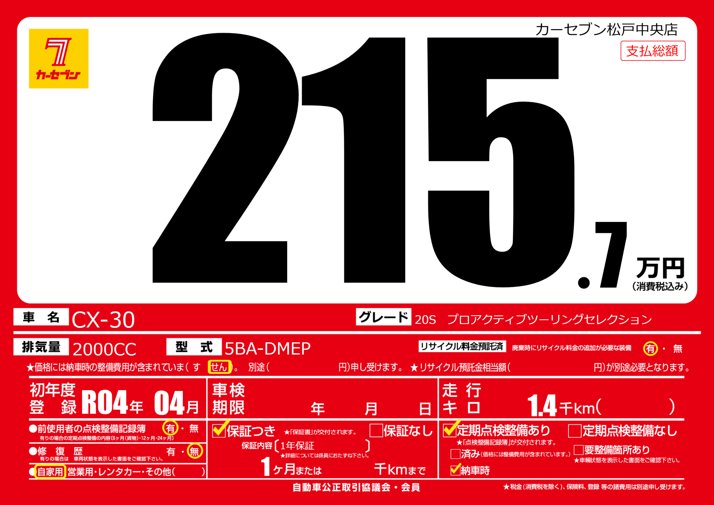 | 車名 | CX-30 | グレード ミッション 排気量 |