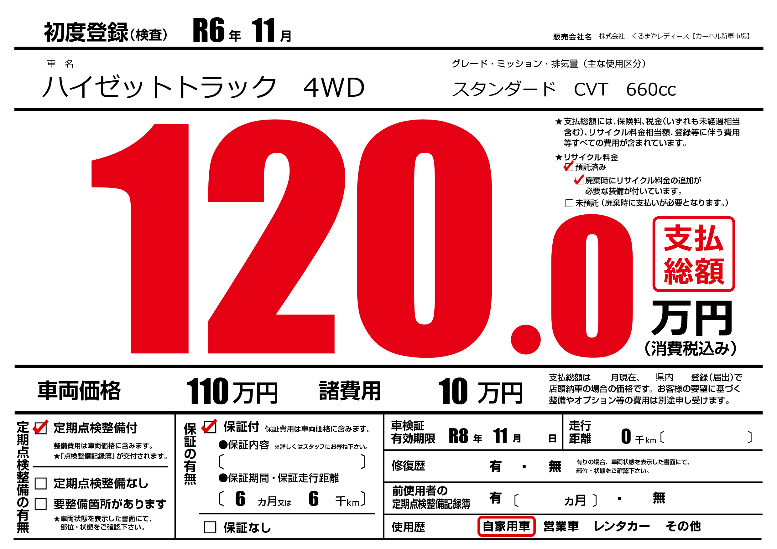 なし | 車検制限 | R8年11月---月 |