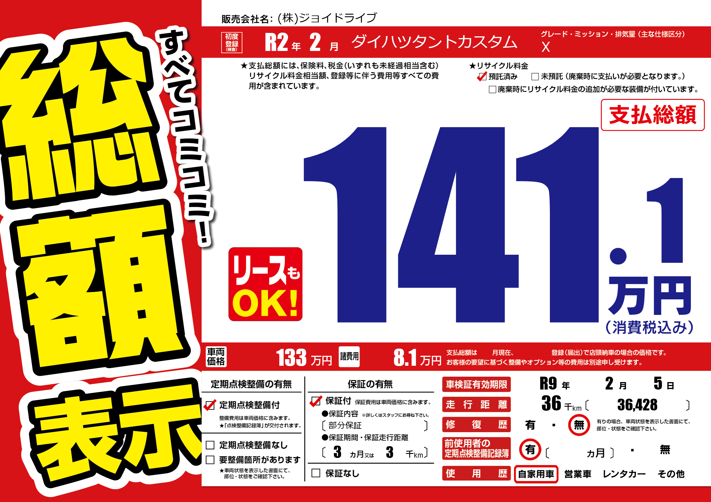 | 走行キロ | 3.6万km | ||