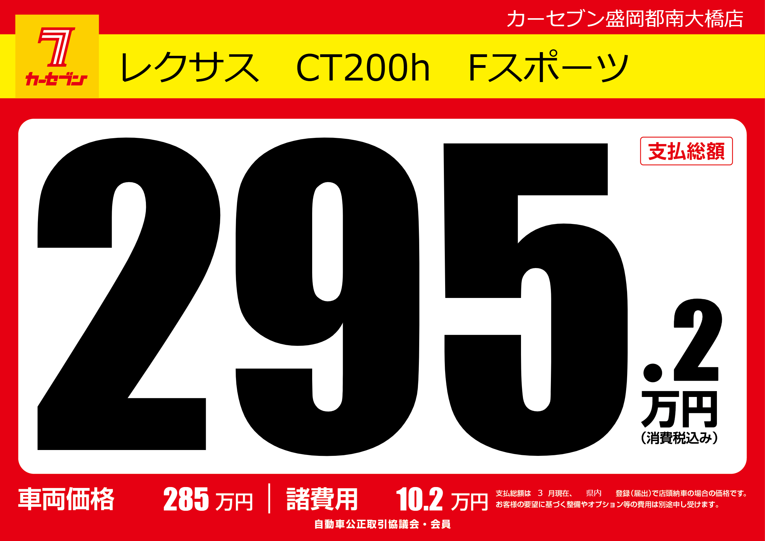 | 車名 | レクサス CT200h Fスポーツ | グレード ミッション 排気量 |