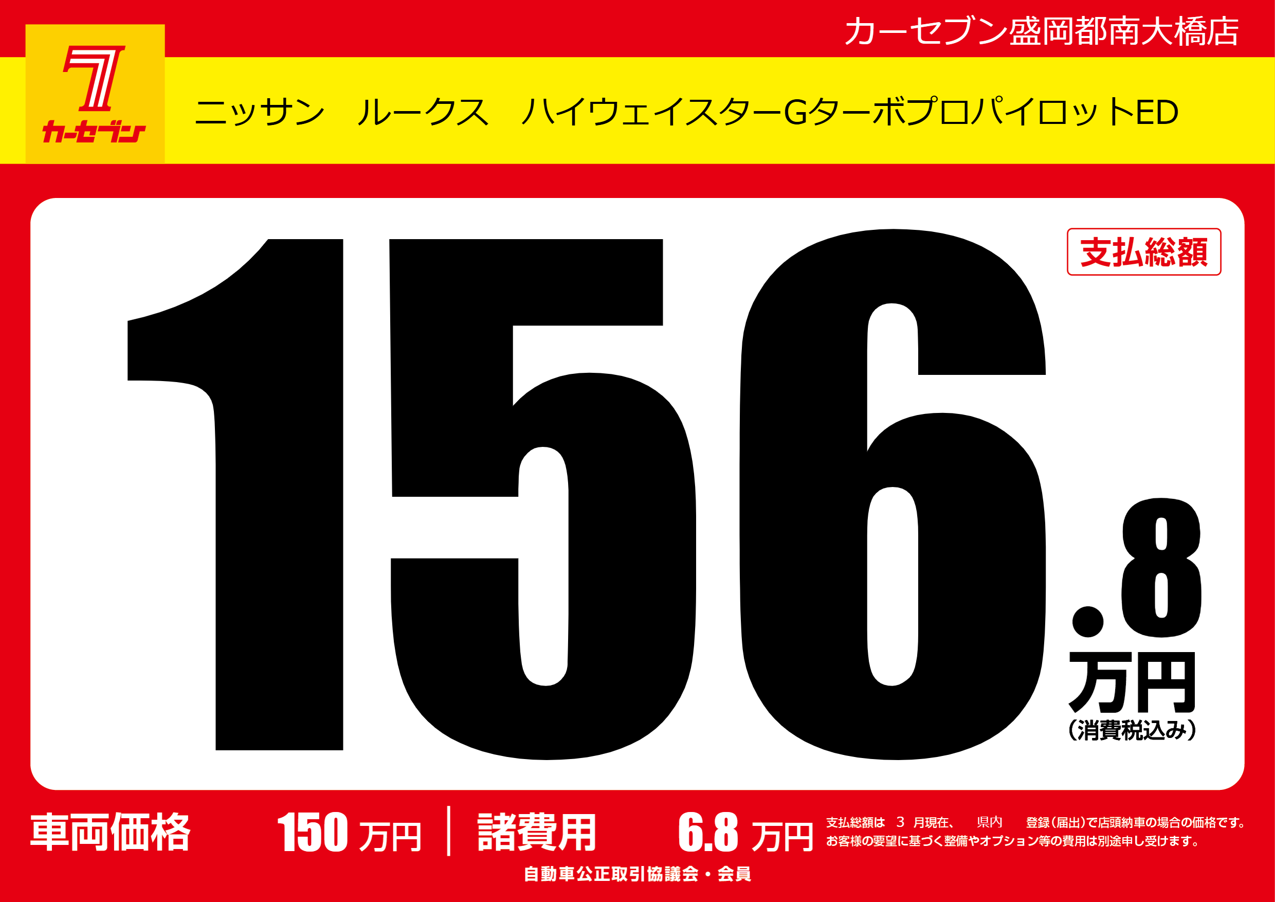 | 車名 | ニッサン ルークス ハイウェイスターGターボプロパイロットED | グレード ミッション 排気量 |