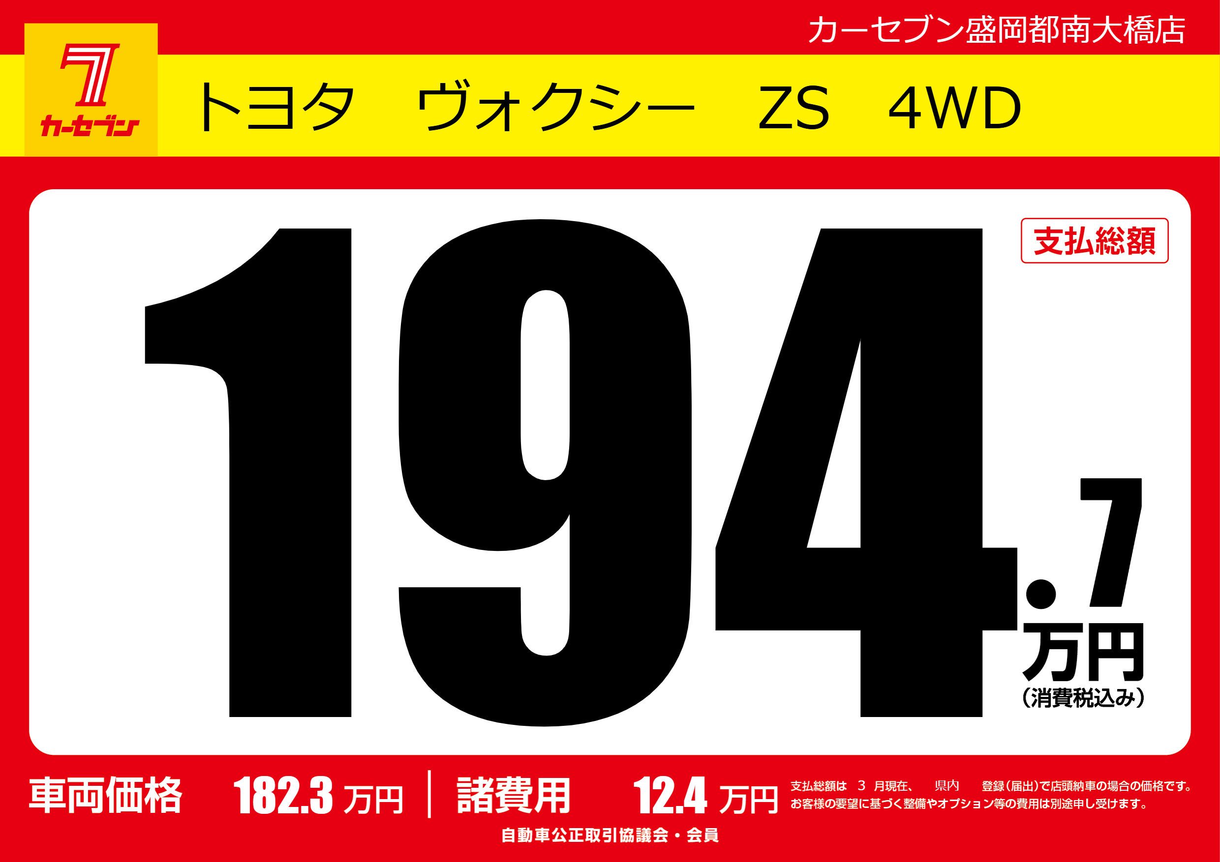 | 車名 | トヨタ ヴォクシー ZS 4WD | グレード ミッション 排気量 |