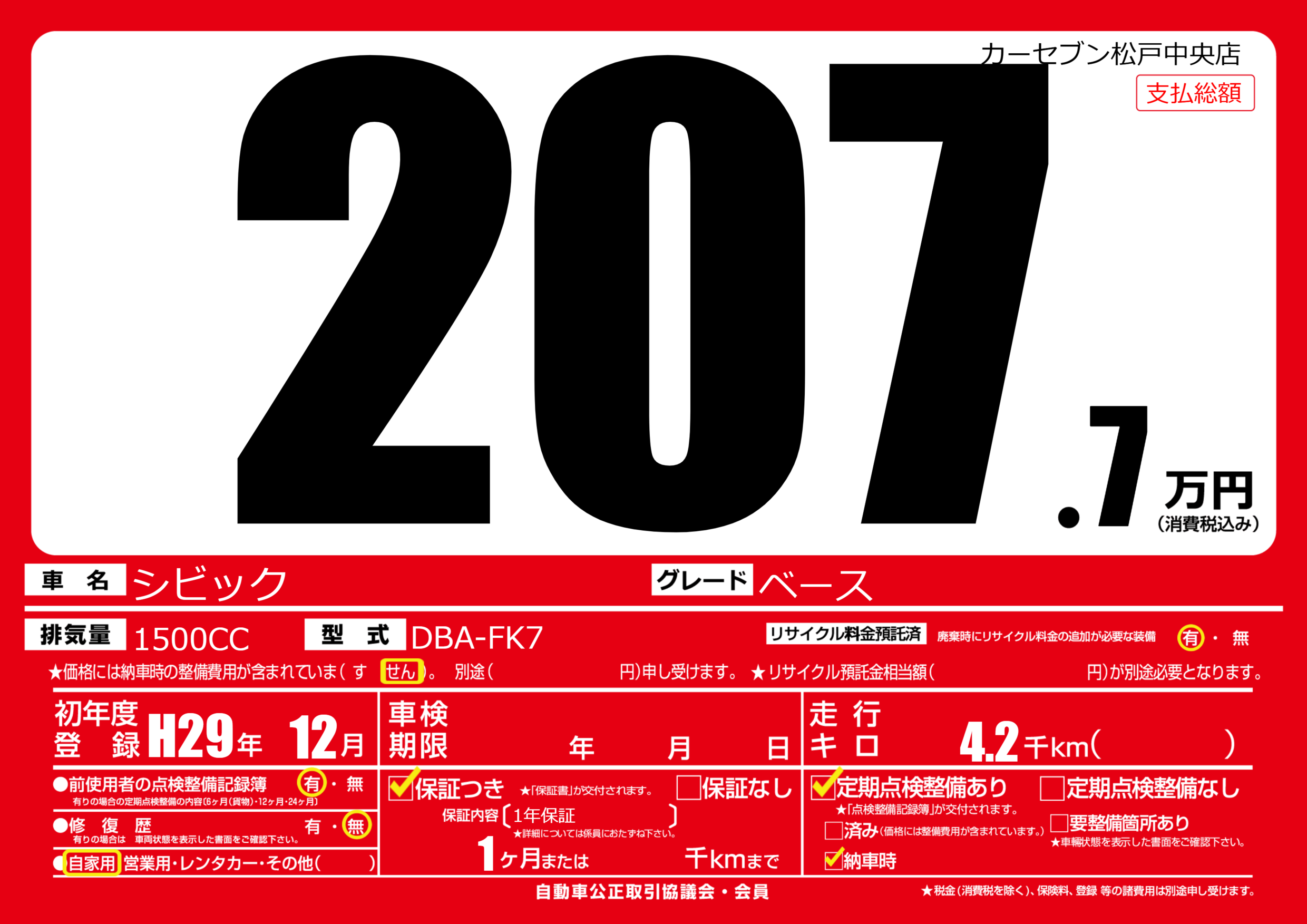 | 定期点検整備 | 定期点検整備あり 納車時あり | ||