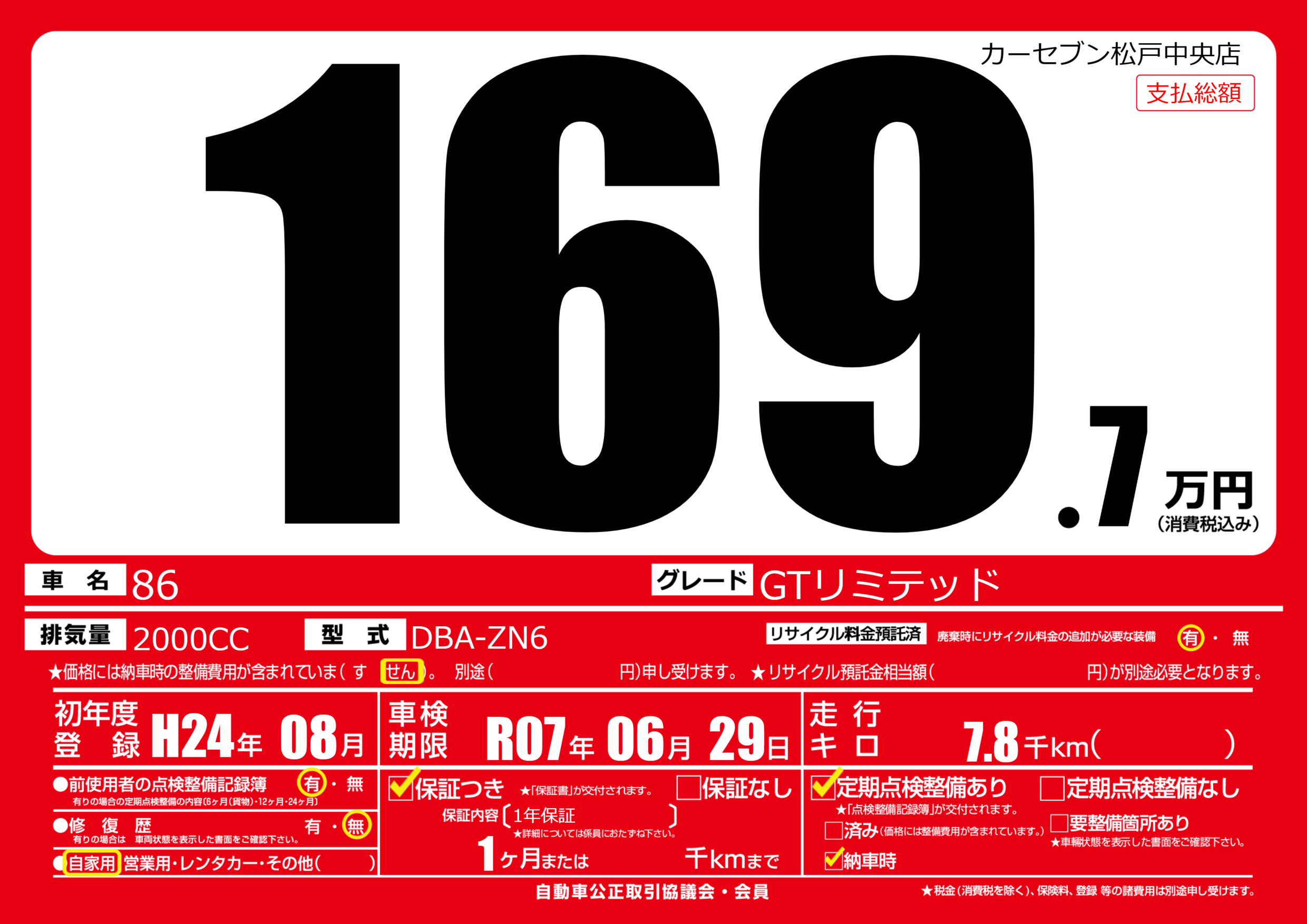 保証付き 保証内容(1年保証) 1ヶ月または()千kmまで |