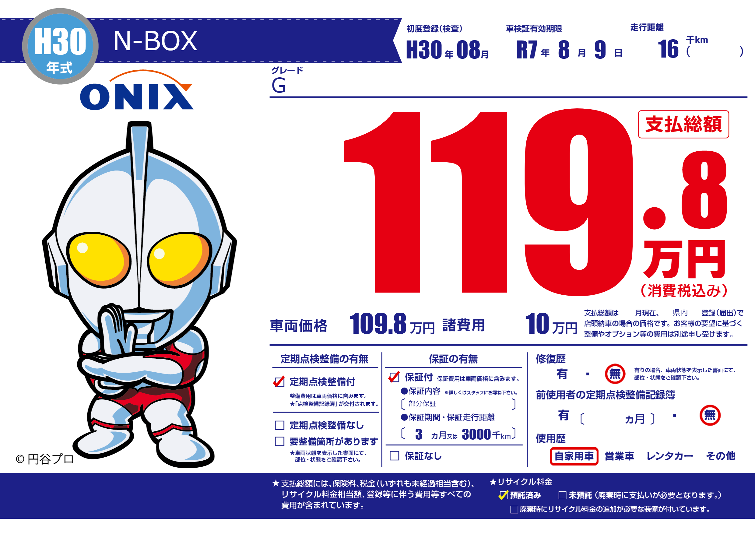 | 走行キロ | 1.6万km | 初年度登録 | H30年08月 |