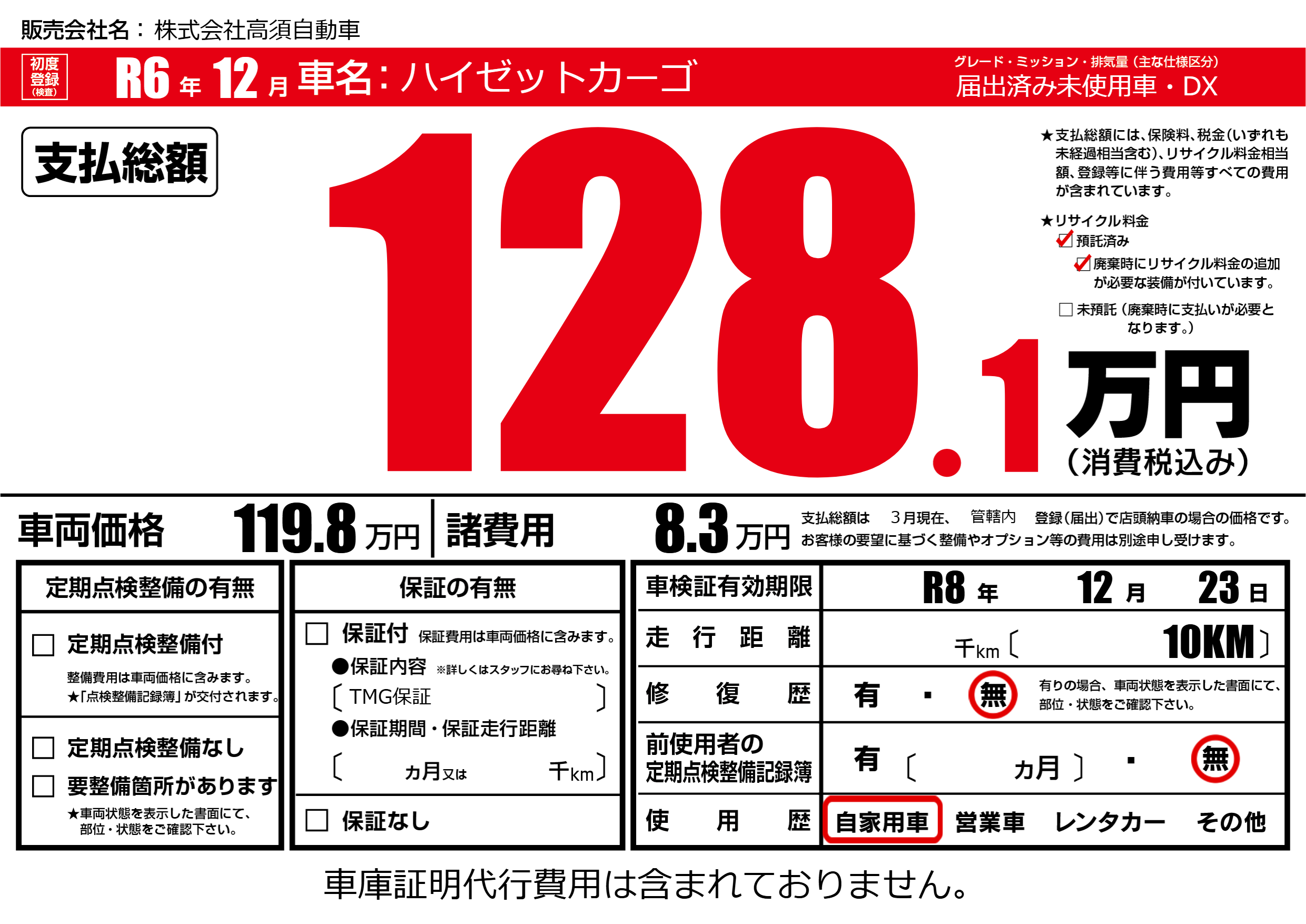 | 走行キロ | - | 初年度登録 | R6年12月 |