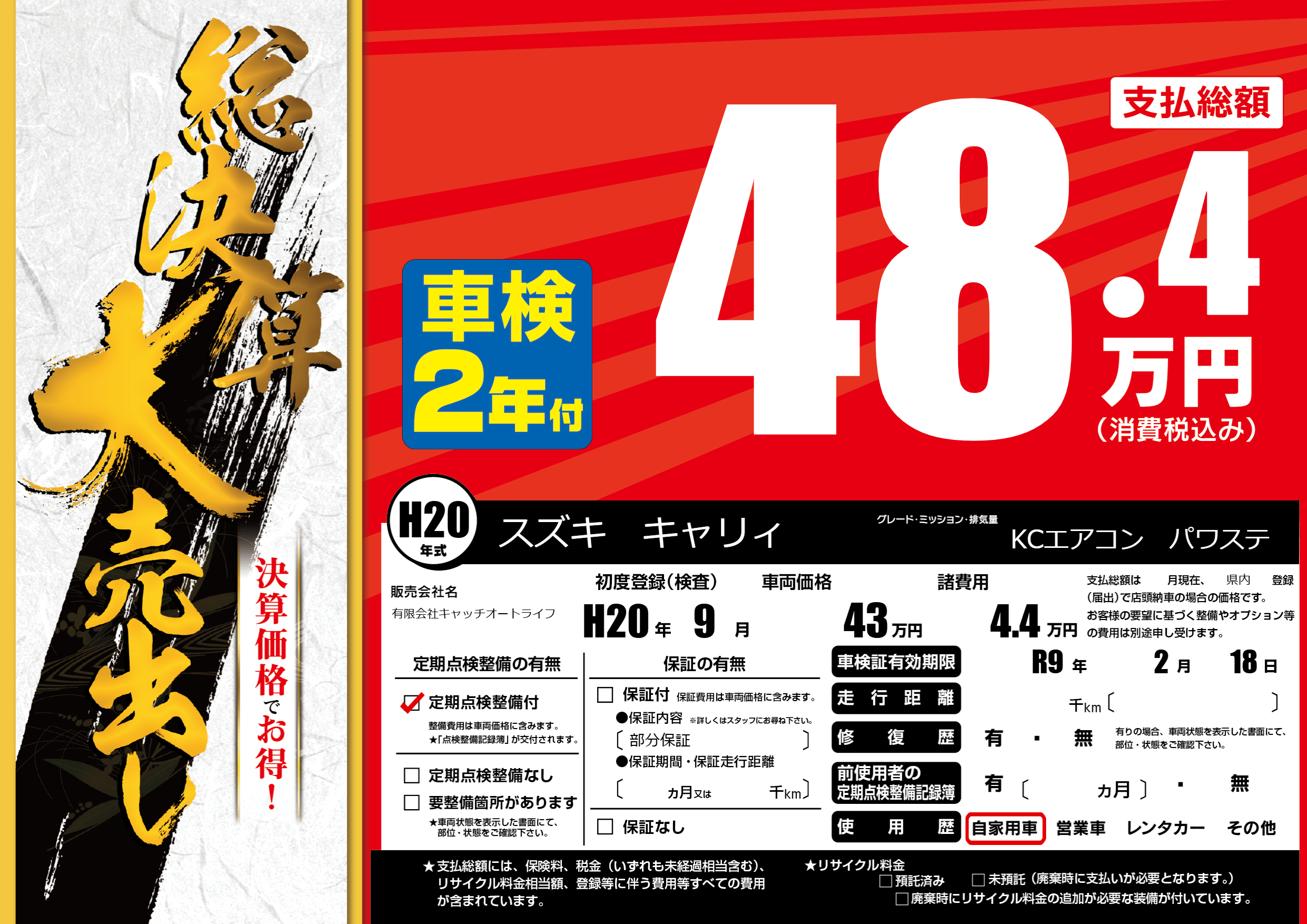 | 走行キロ | - | 初年度登録 | H20年9月 |