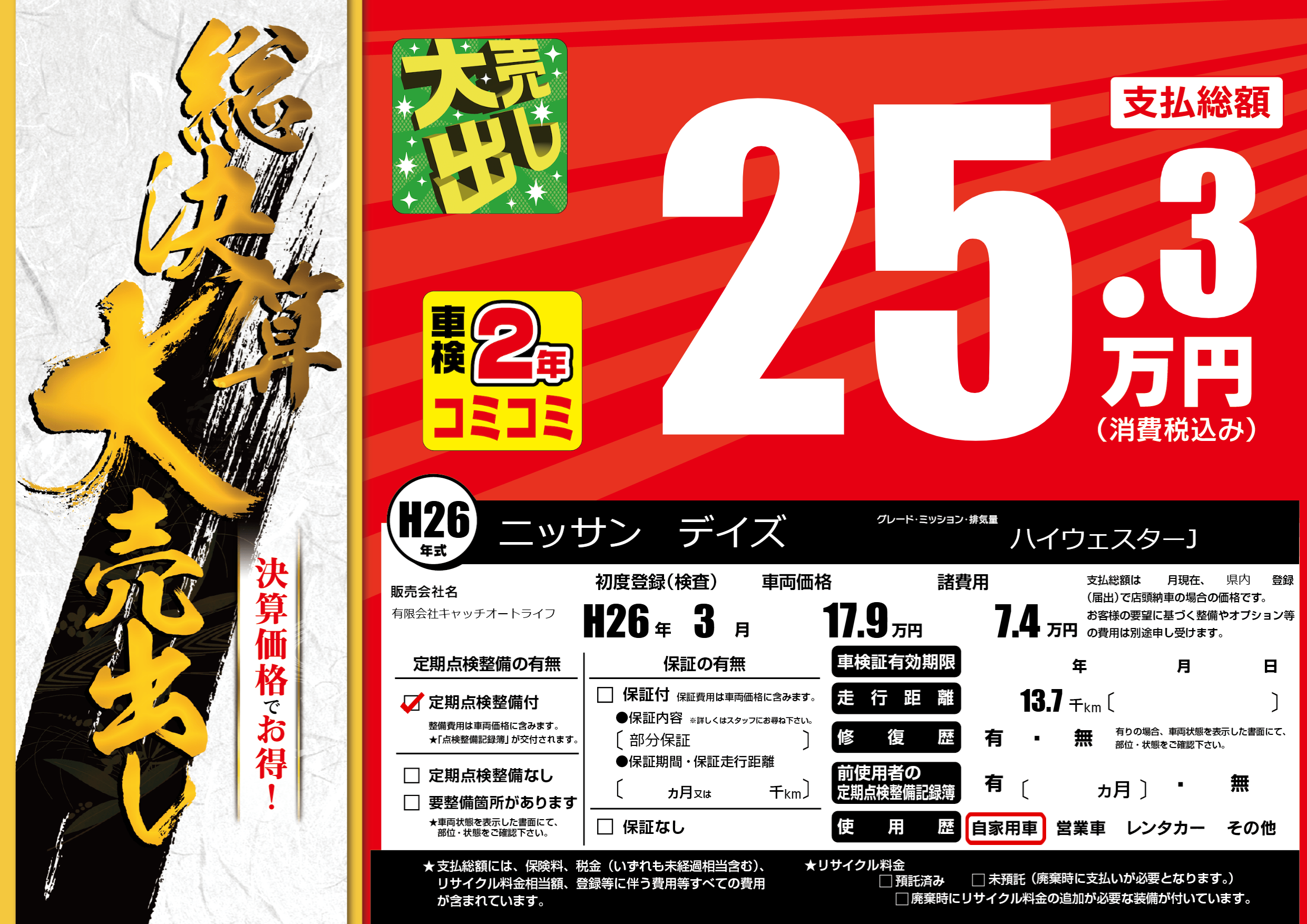 | 車名 | ニッサン デイズ | グレード ミッション 排気量 |