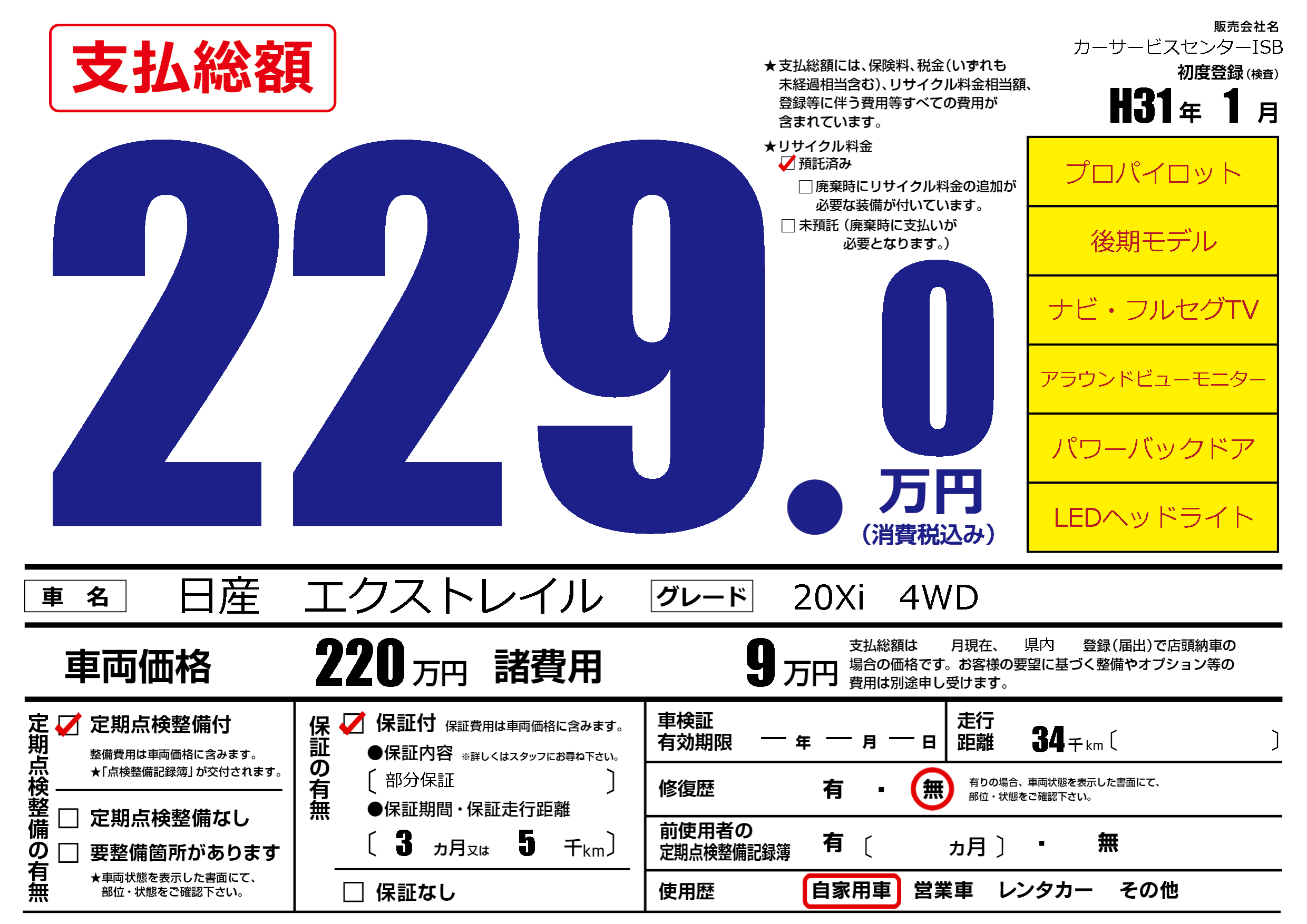 | 初年度登録 | H31年1月 | ||