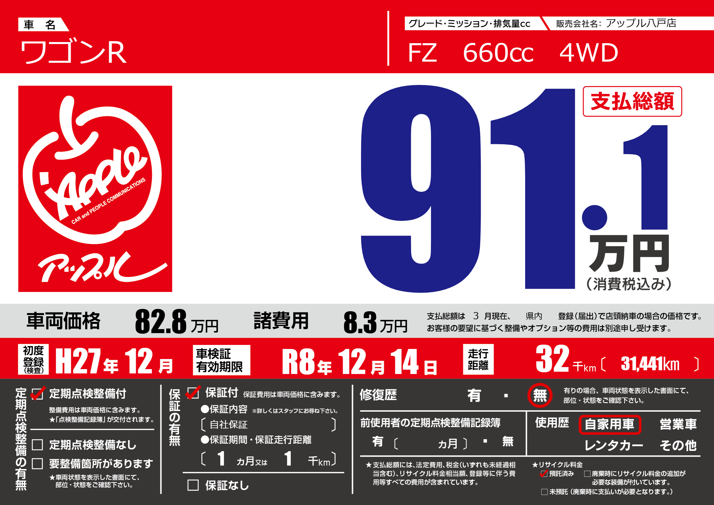 なし | 車検制限 | R8年12月14月 |