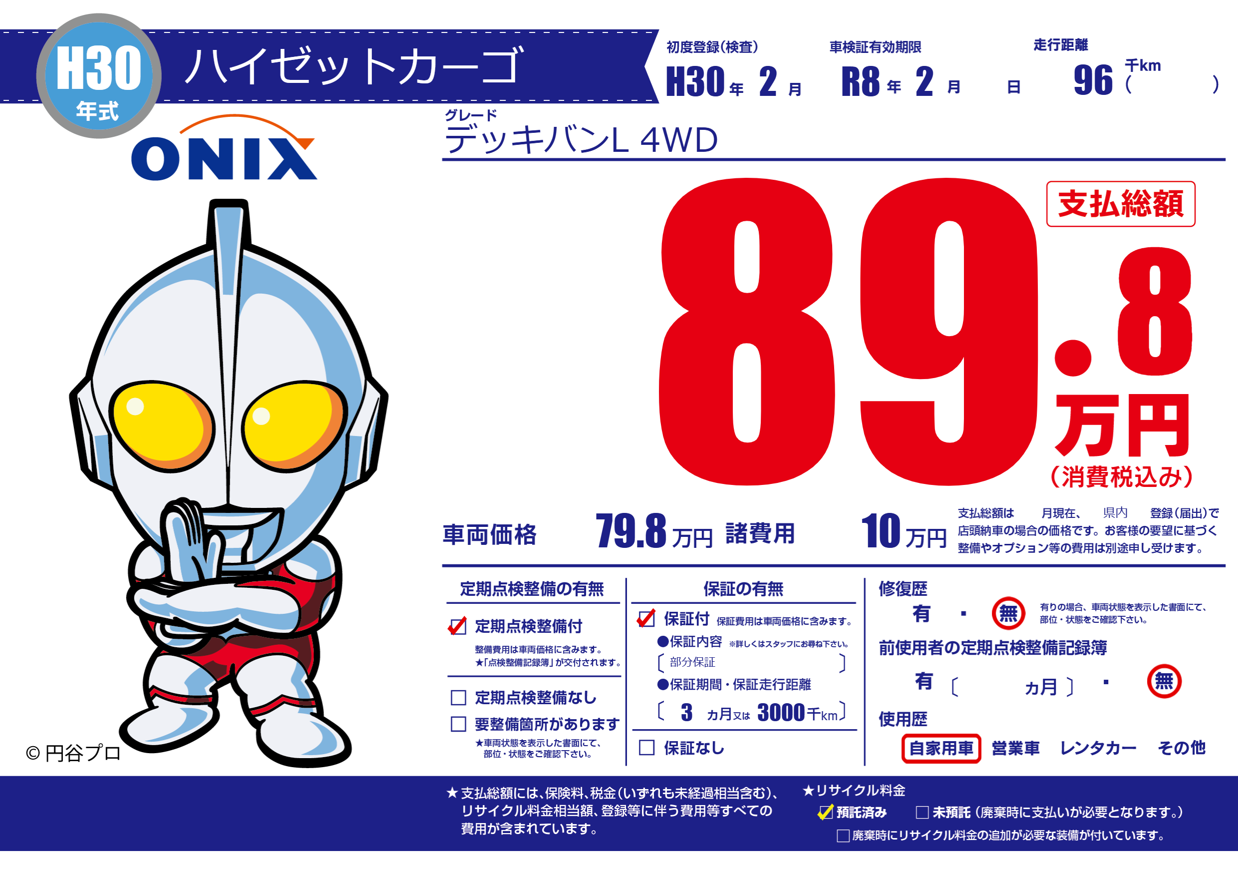保証付き 保証内容(部分保証) 3ヶ月または(3000)千kmまで |