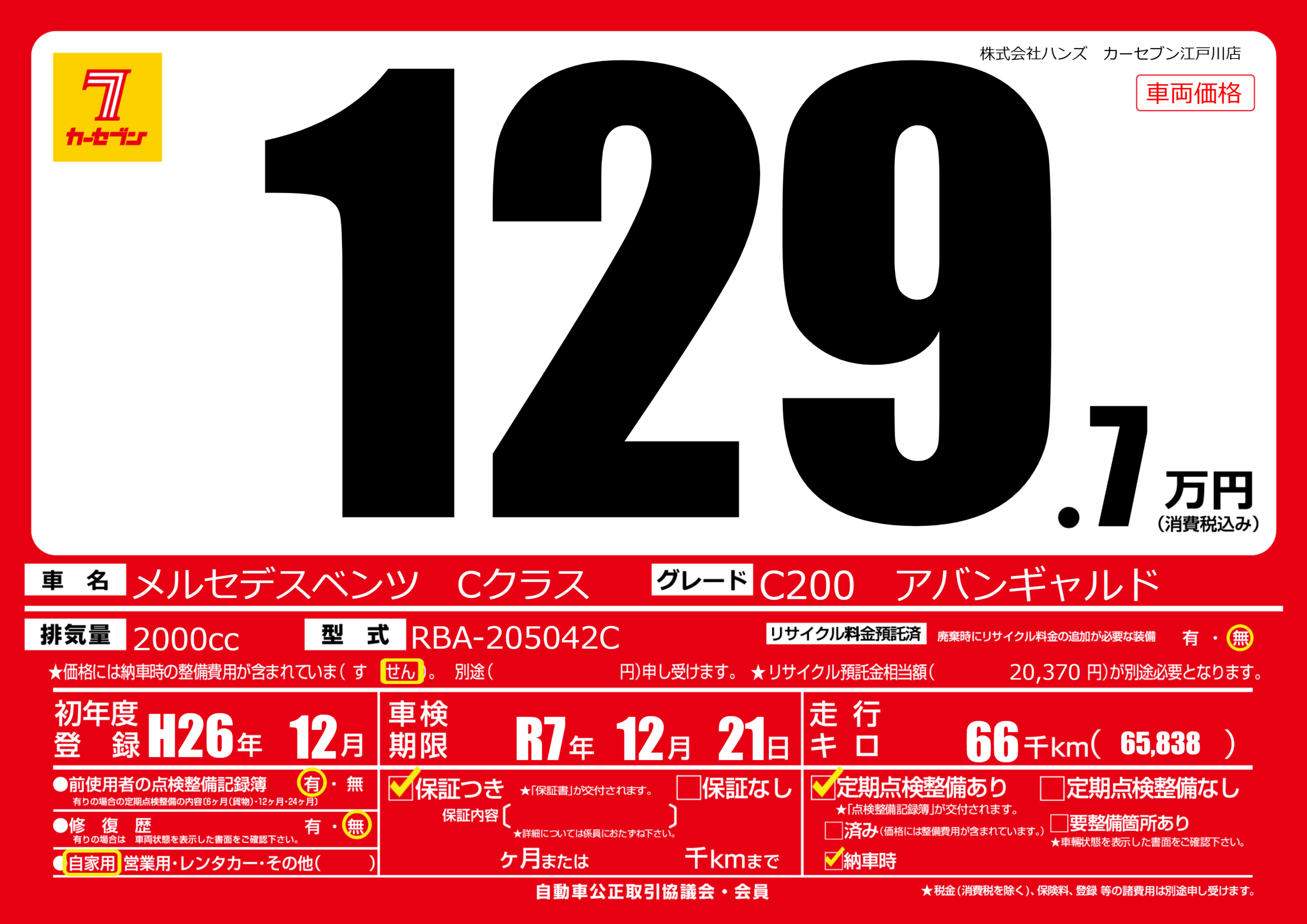 なし | 車検制限 | R7年12月21月 |