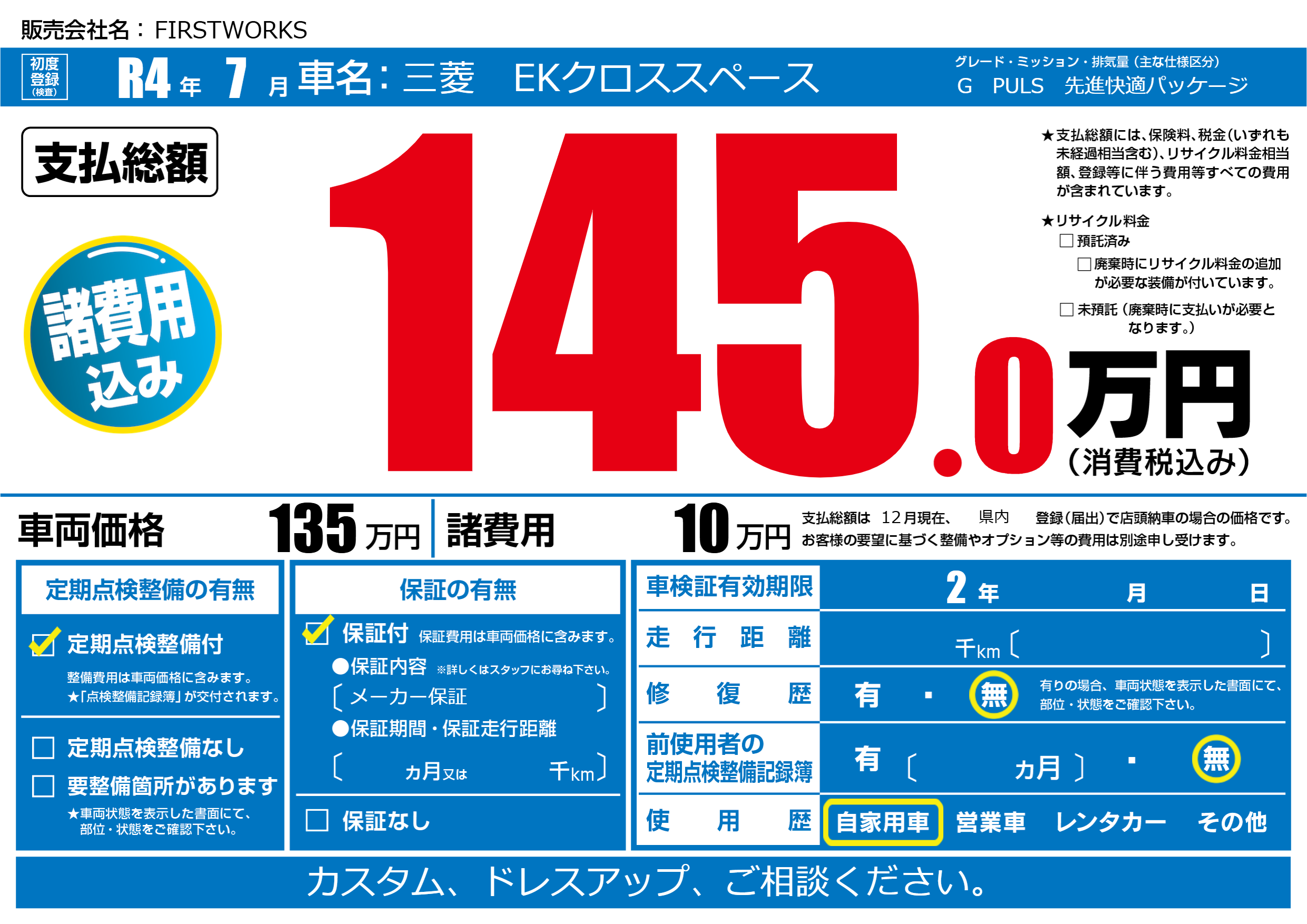なし | 車検制限 | 2年---月---月 |