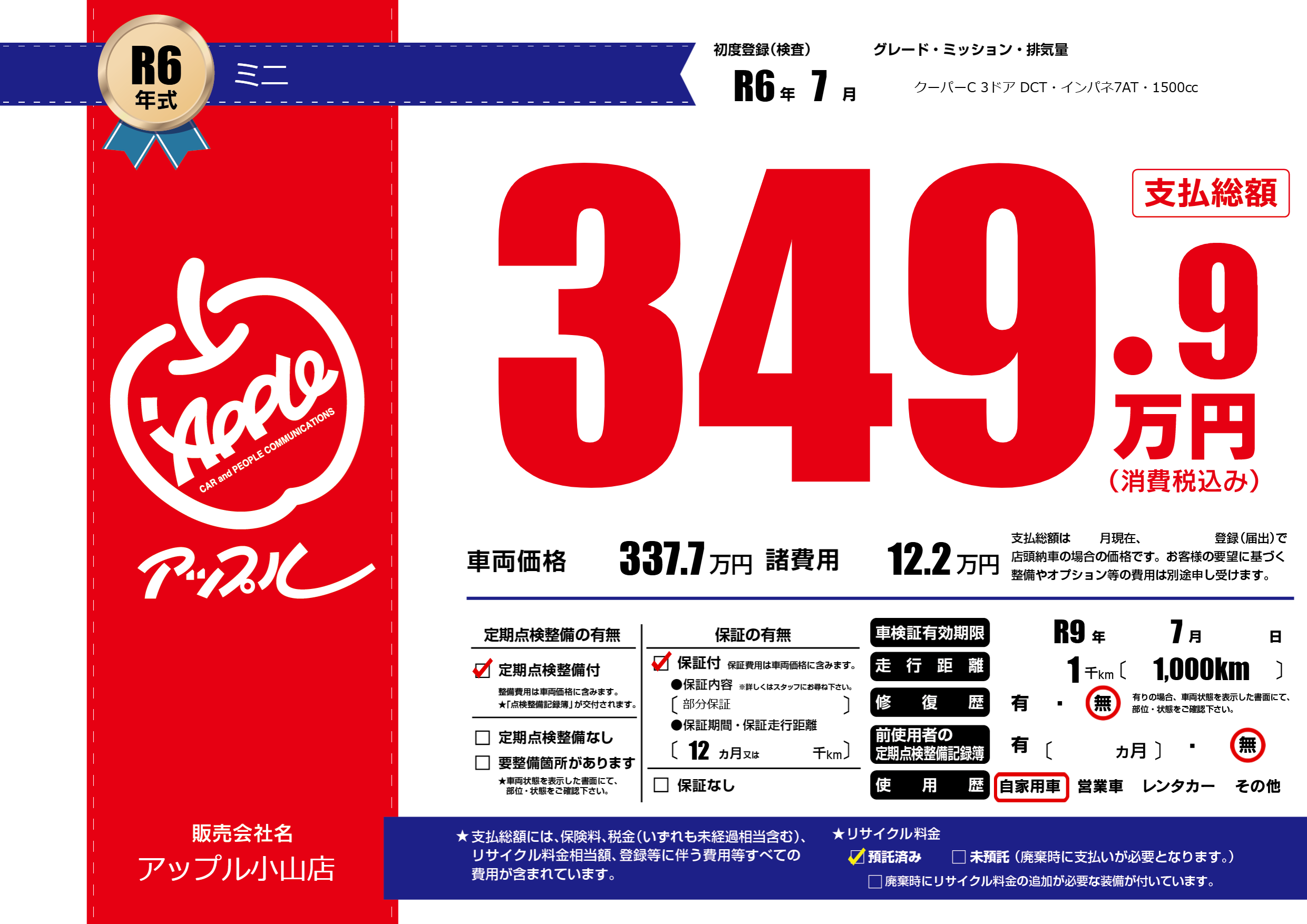 | 走行キロ | 0.1万km | 初年度登録 | R6年7月 |