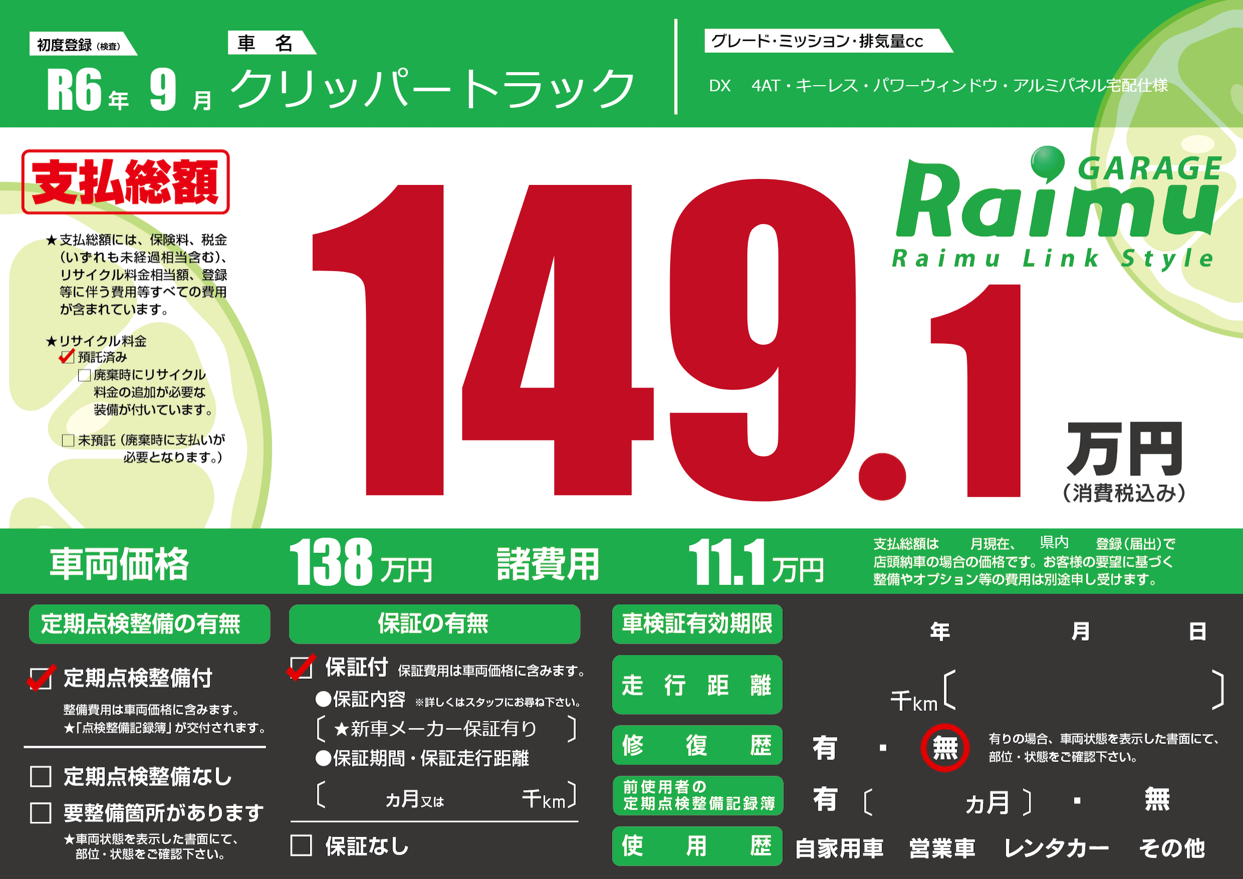 定期点検整備 | 定期点検整備あり |
