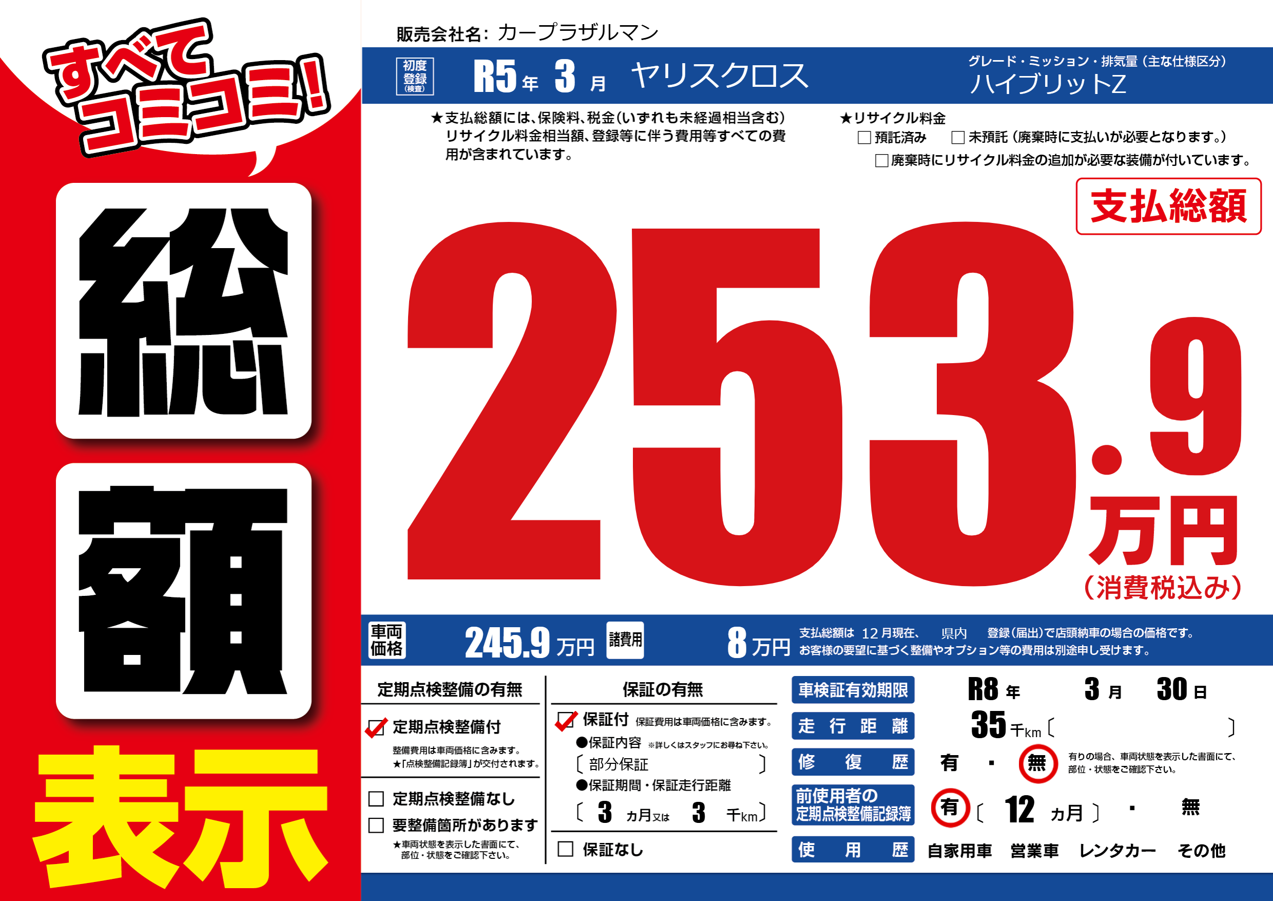 | 走行キロ | 3.5万km | 初年度登録 | R5年3月 |