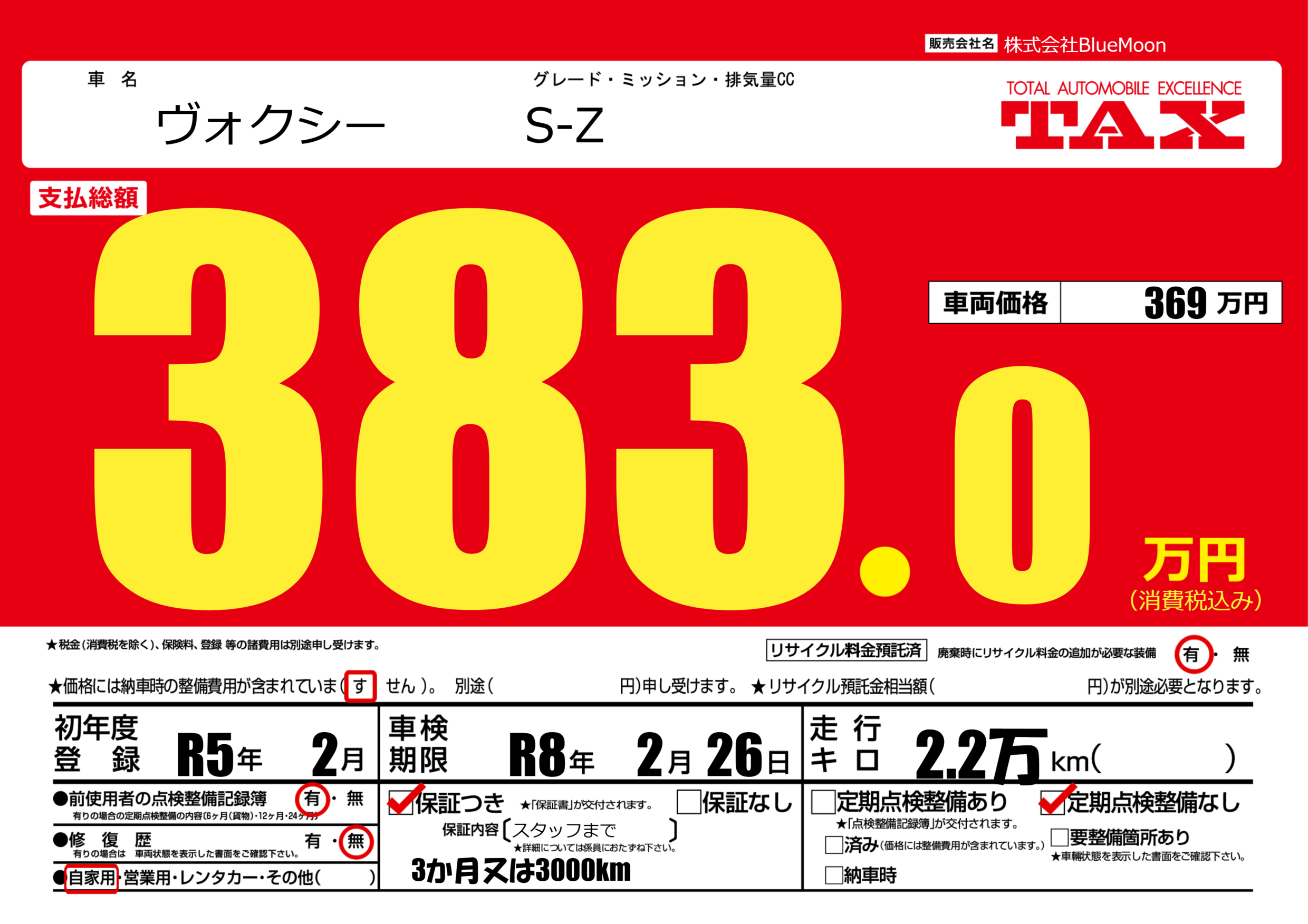| 走行キロ | 0.2万km | 初年度登録 | R5年2月 |