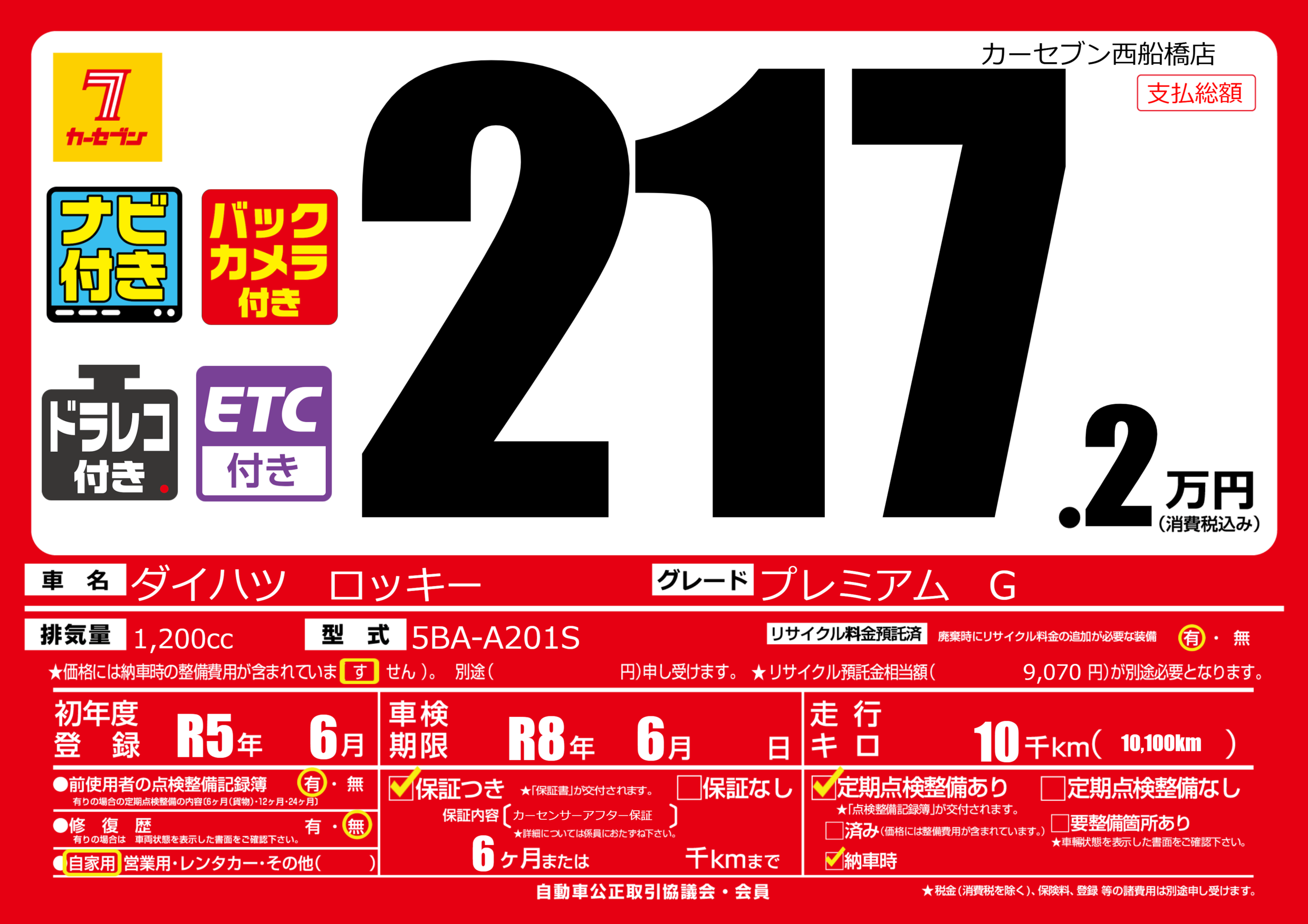 | 車名 | ダイハツ ロッキー | グレード ミッション 排気量 |