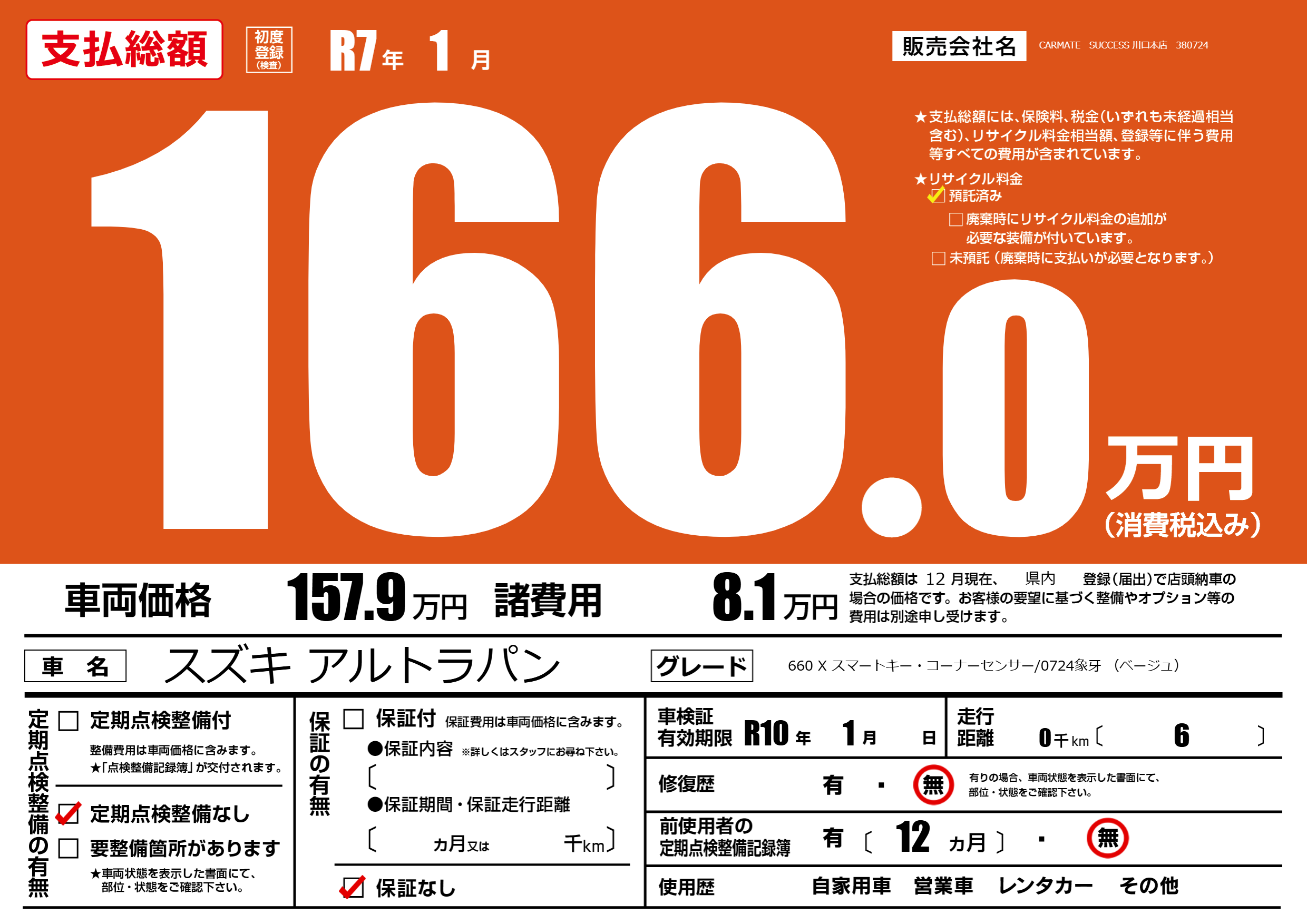 | 走行キロ | - | 初年度登録 | R7年1月 |