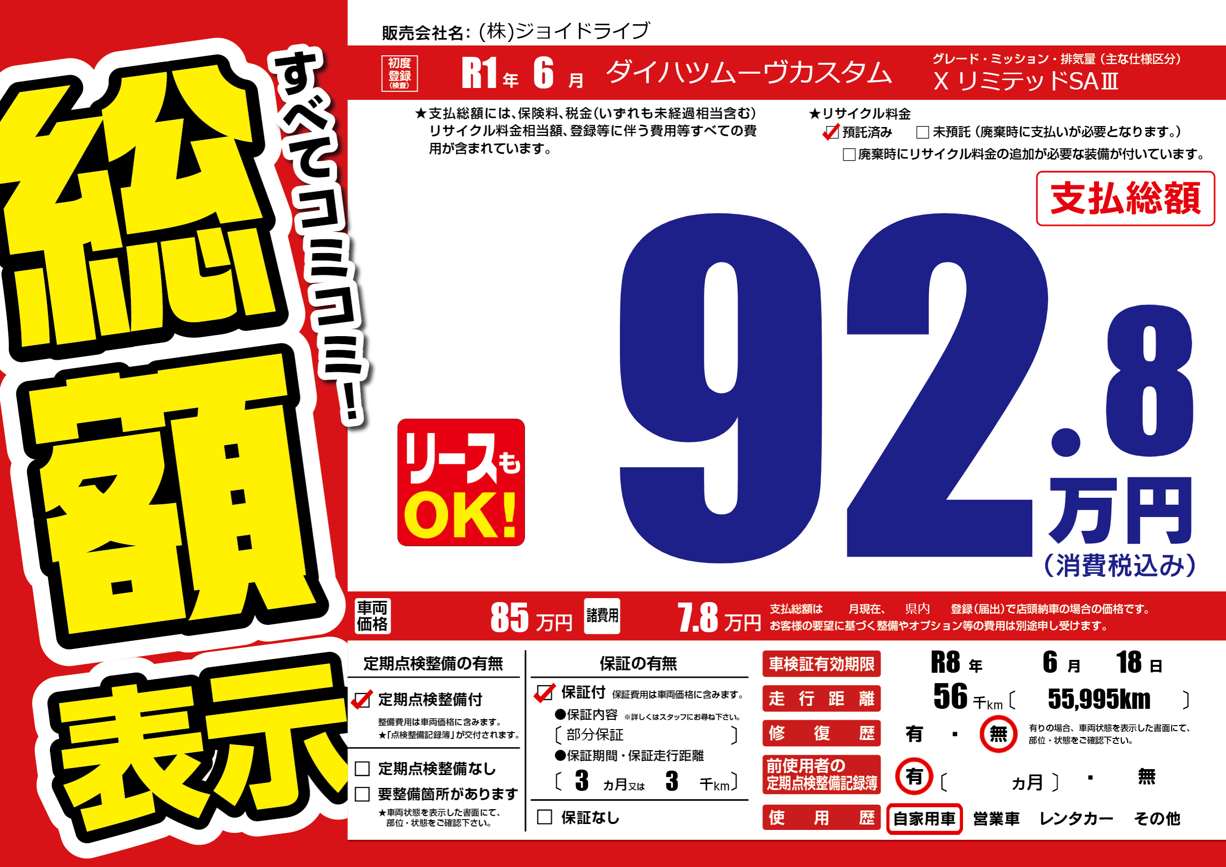 | 車検制限 | R8年 6月 18日 | ||