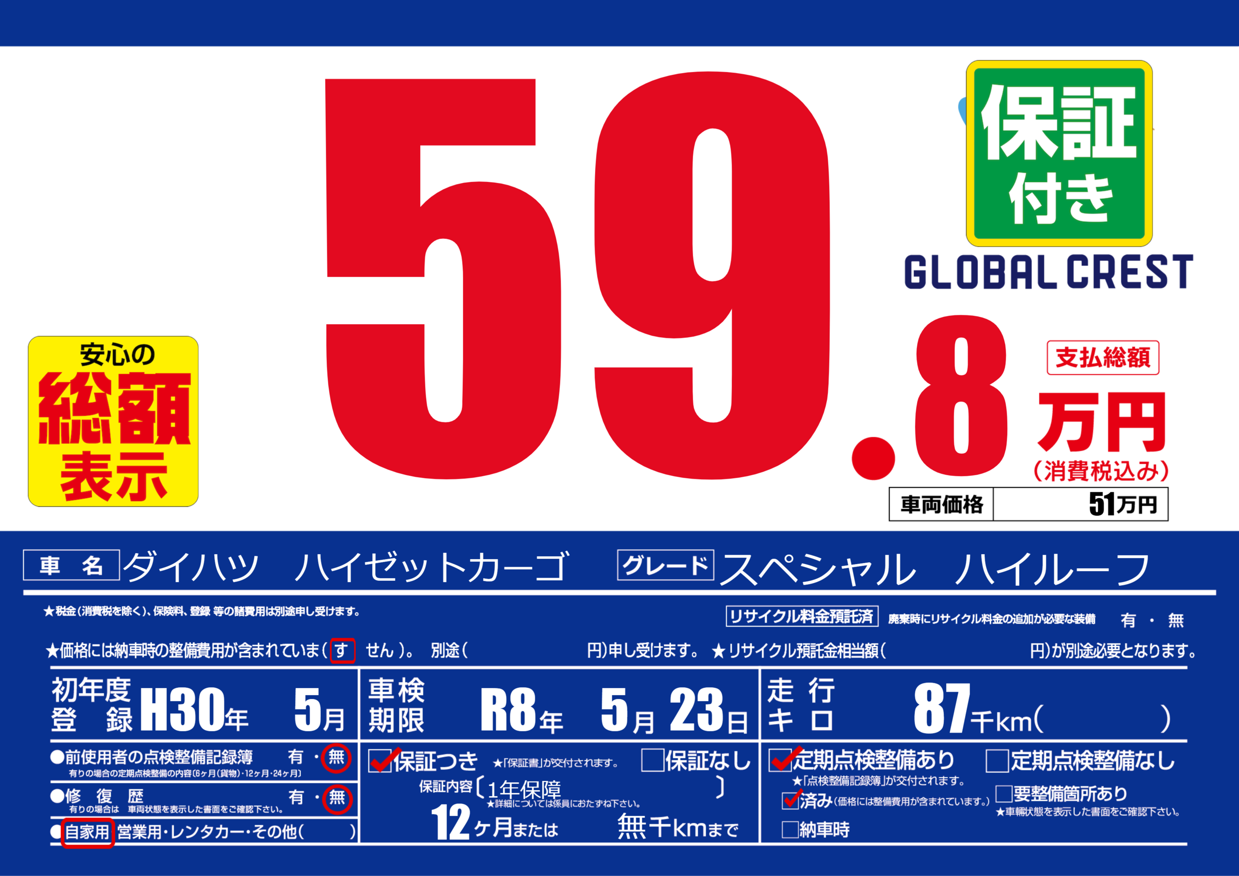 | 定期点検整備 | 定期点検整備あり 定期点検整備済み | ||