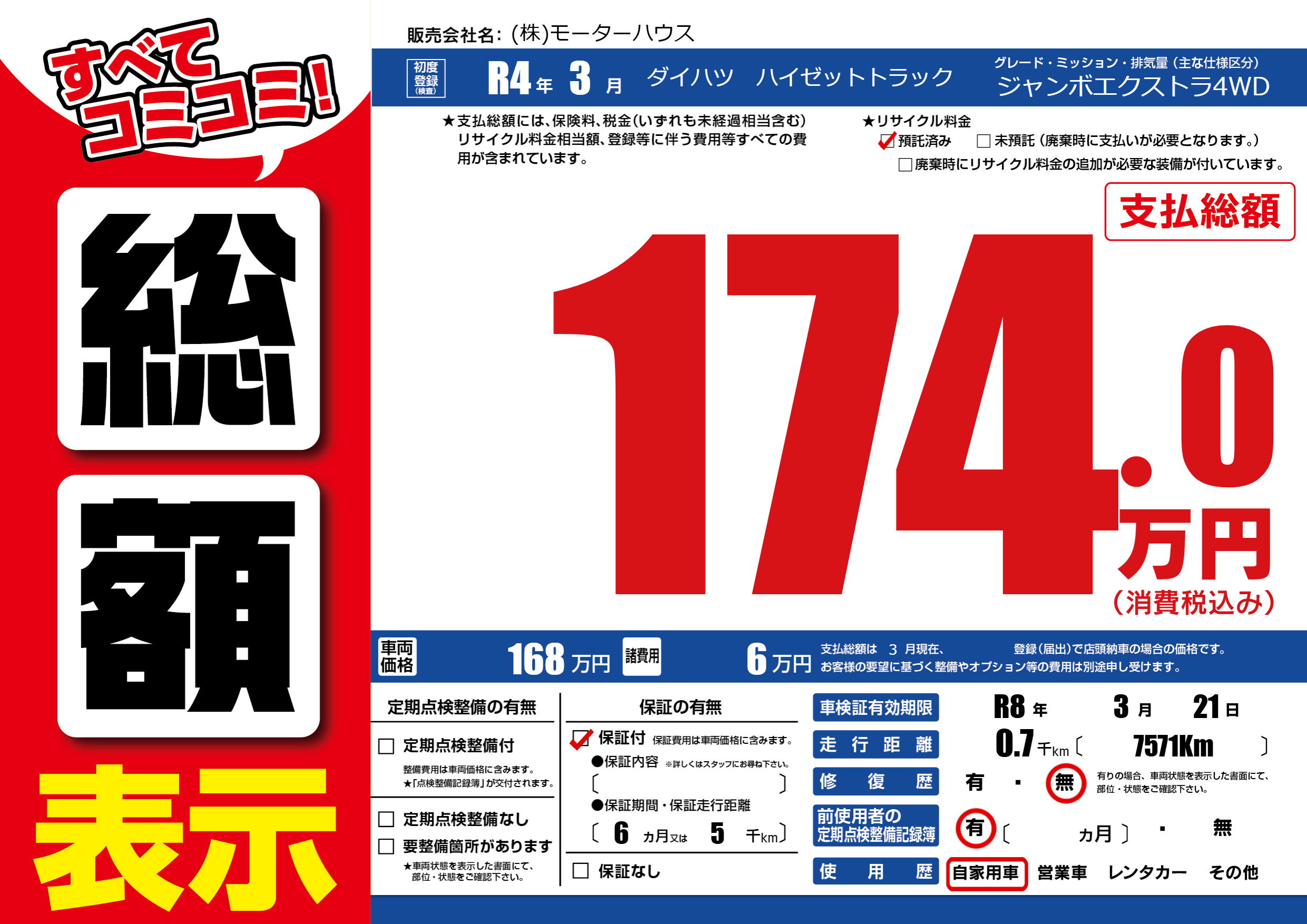 | 車検制限 | R8年 3月 21日 | ||
