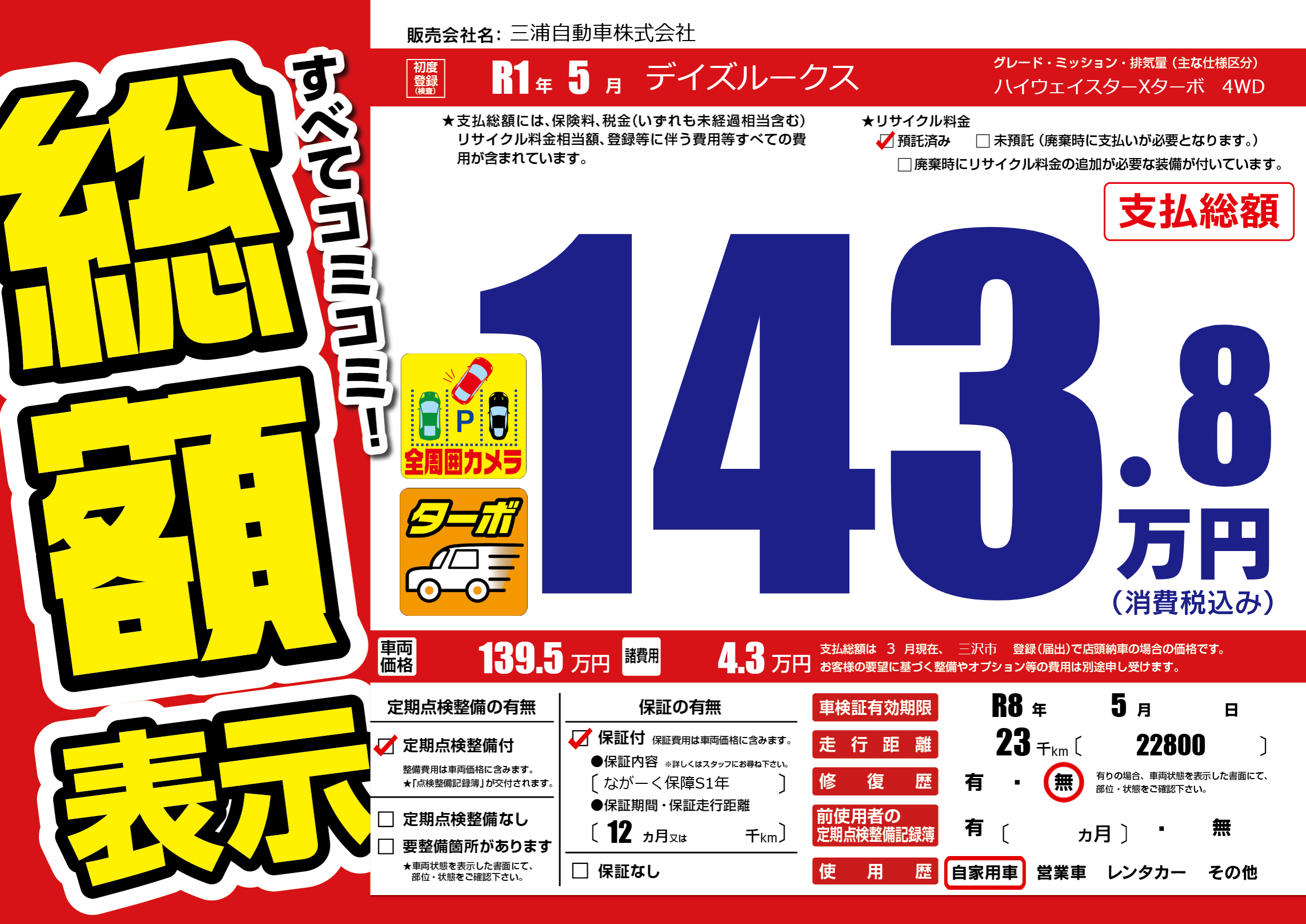 なし | 車検制限 | R8年5月---月 |