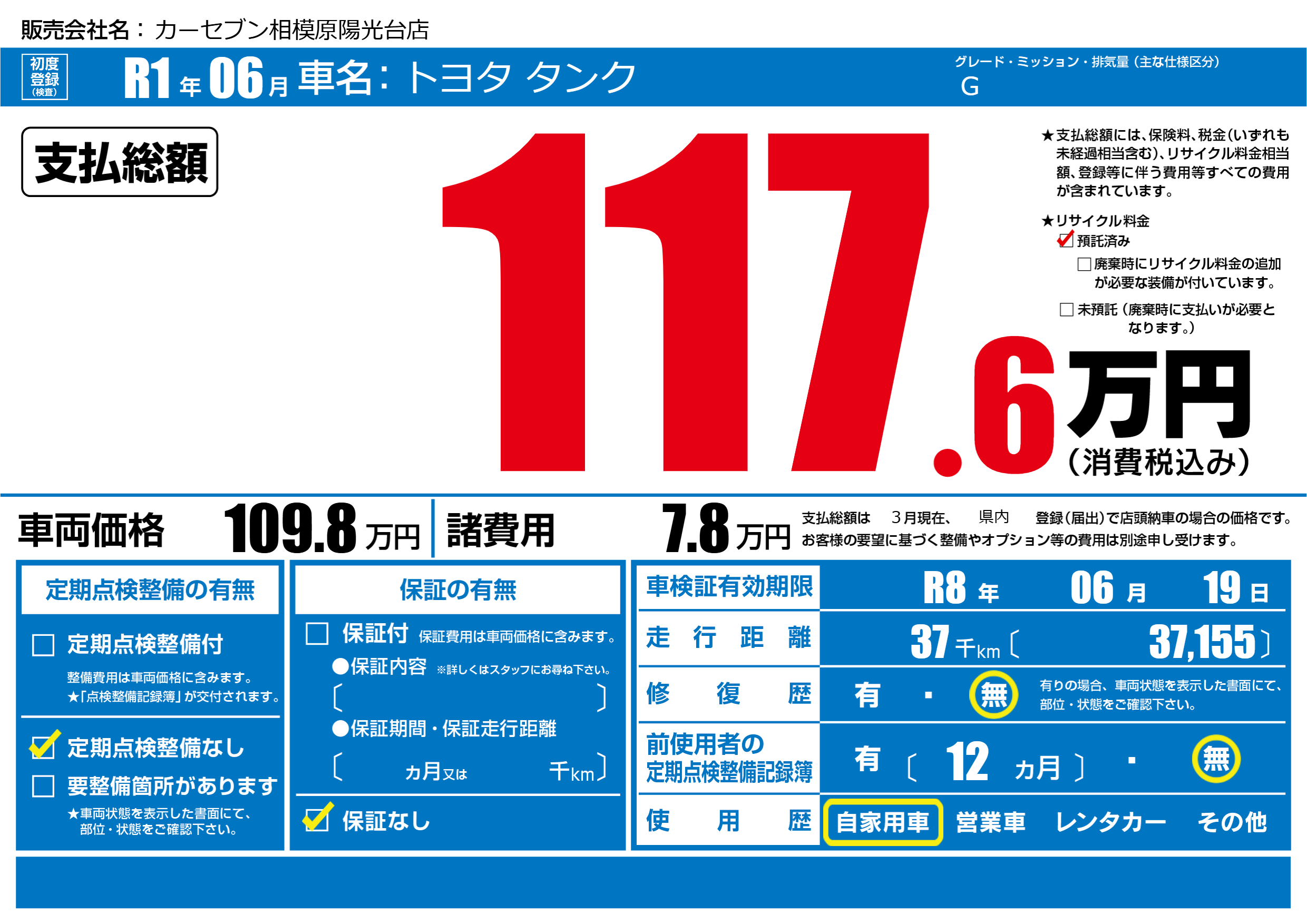 車検制限 R8年 06月 19日
