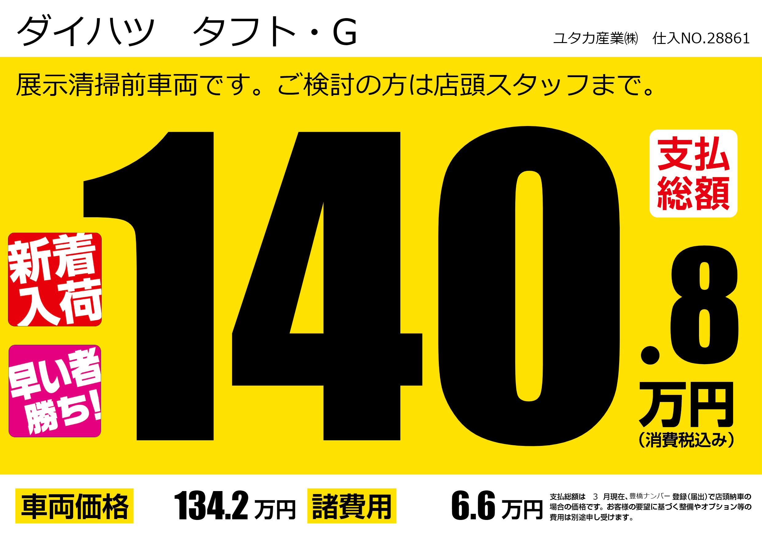 | 車名 | ダイハツ タフト・G | グレード ミッション 排気量 |