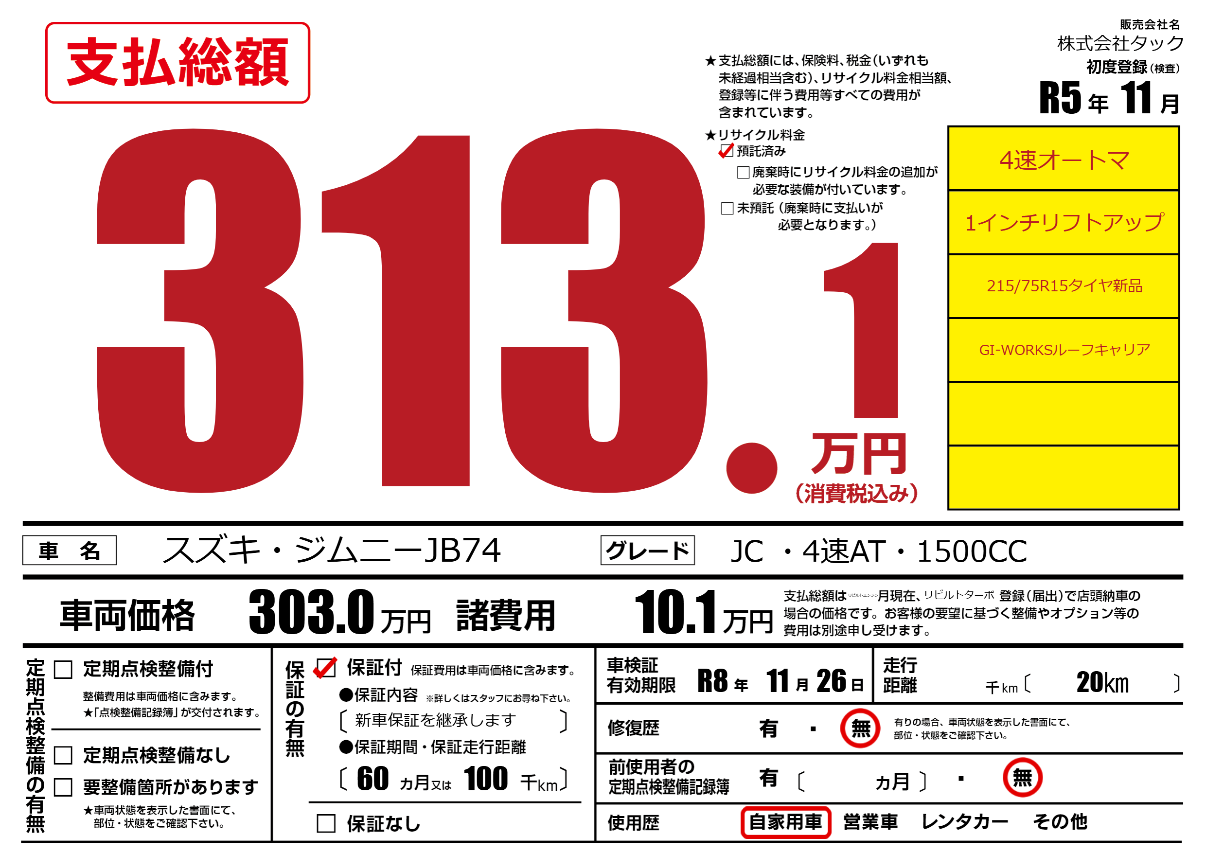 なし | 車検制限 | R8年11月26月 |