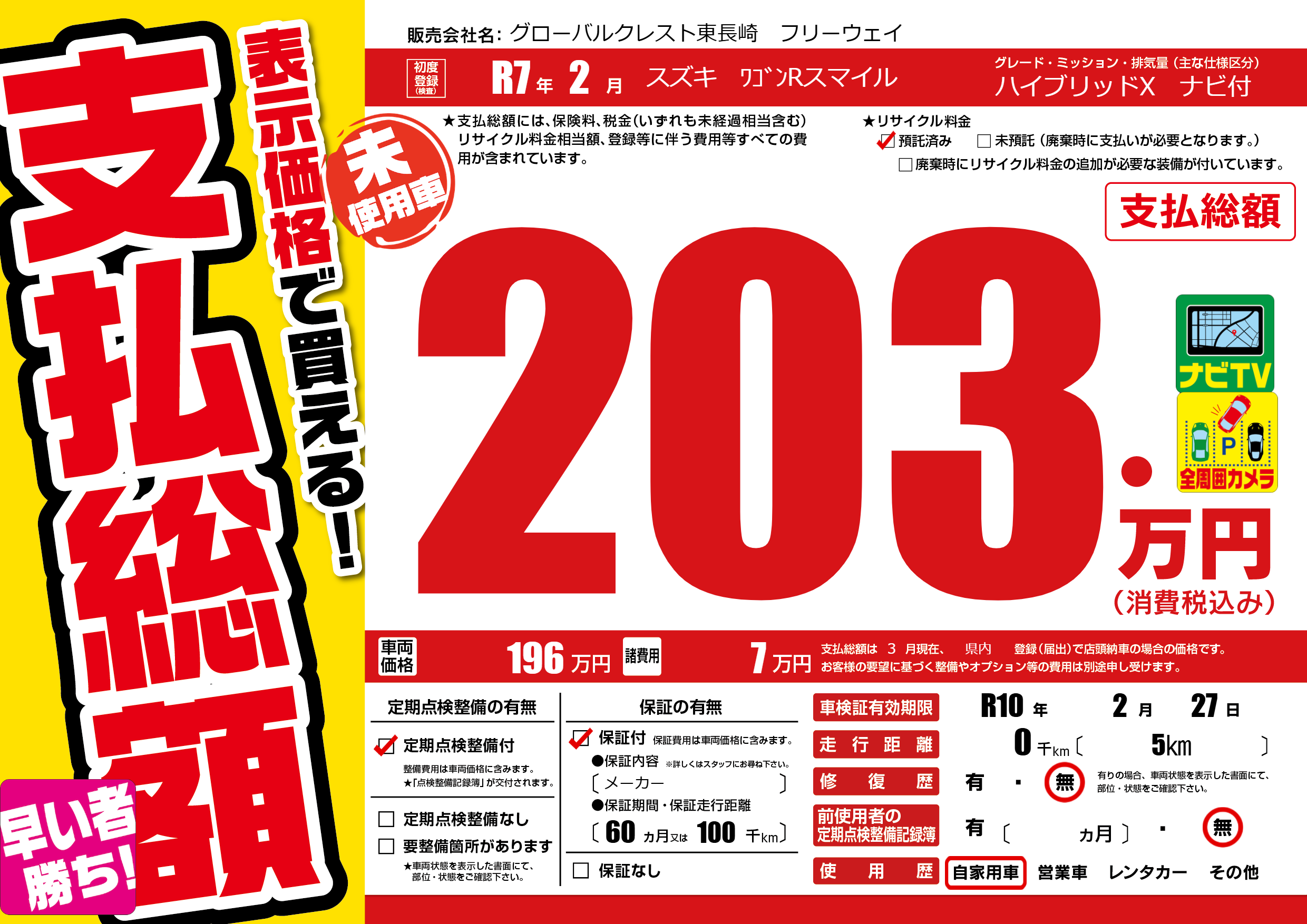 | 走行キロ | - | 初年度登録 | R7年2月 |