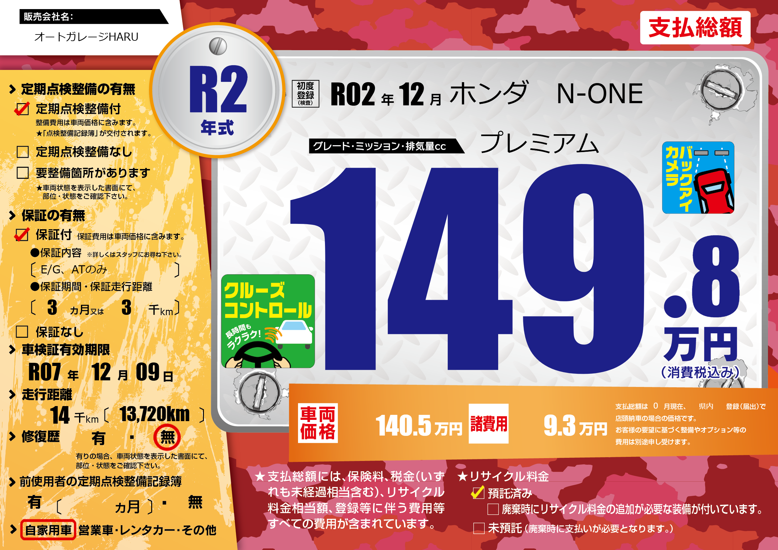 | 車検制限 | R07年 12月 09日 | ||