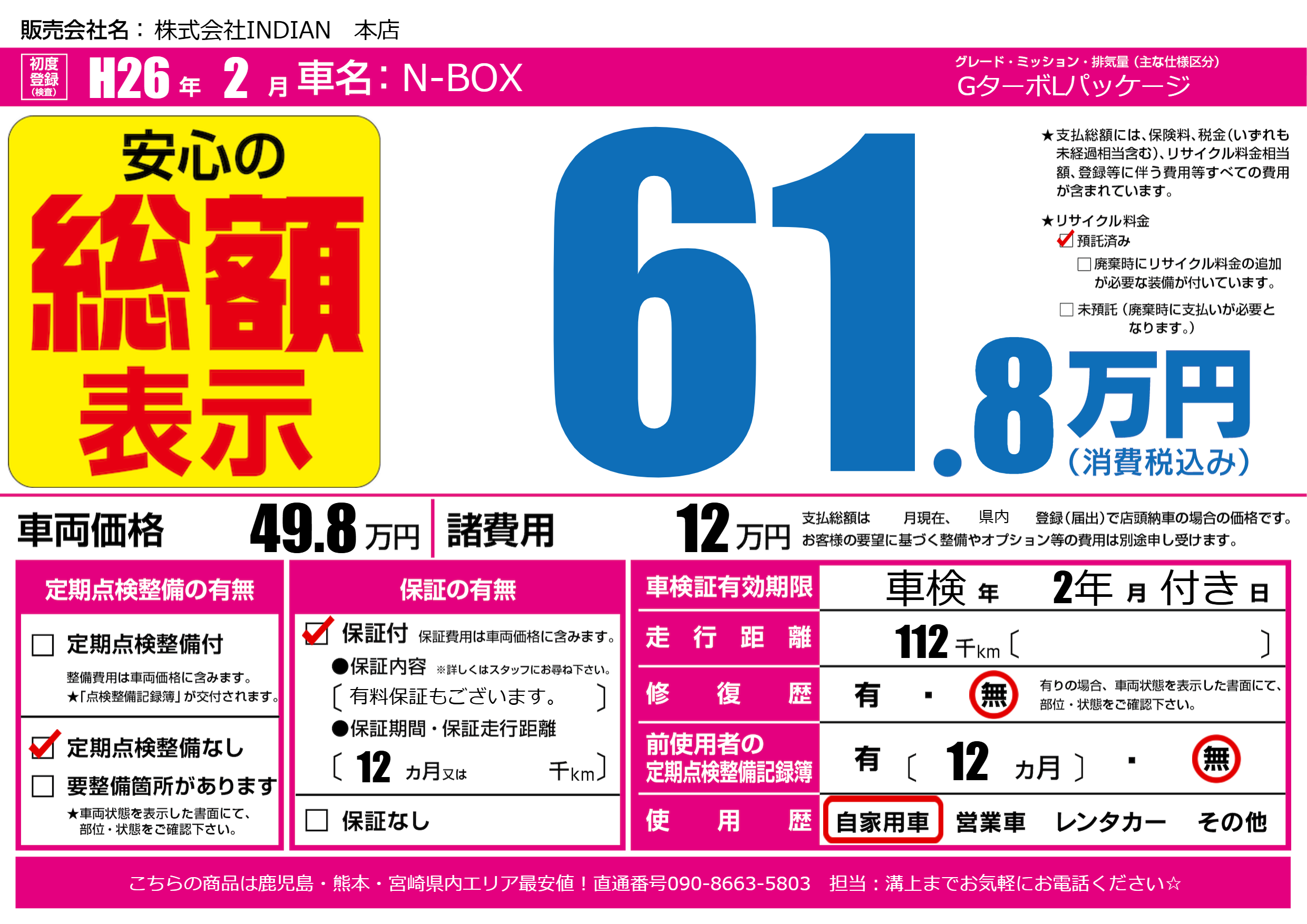 | 定期点検整備 | 定期点検整備なし | ||
