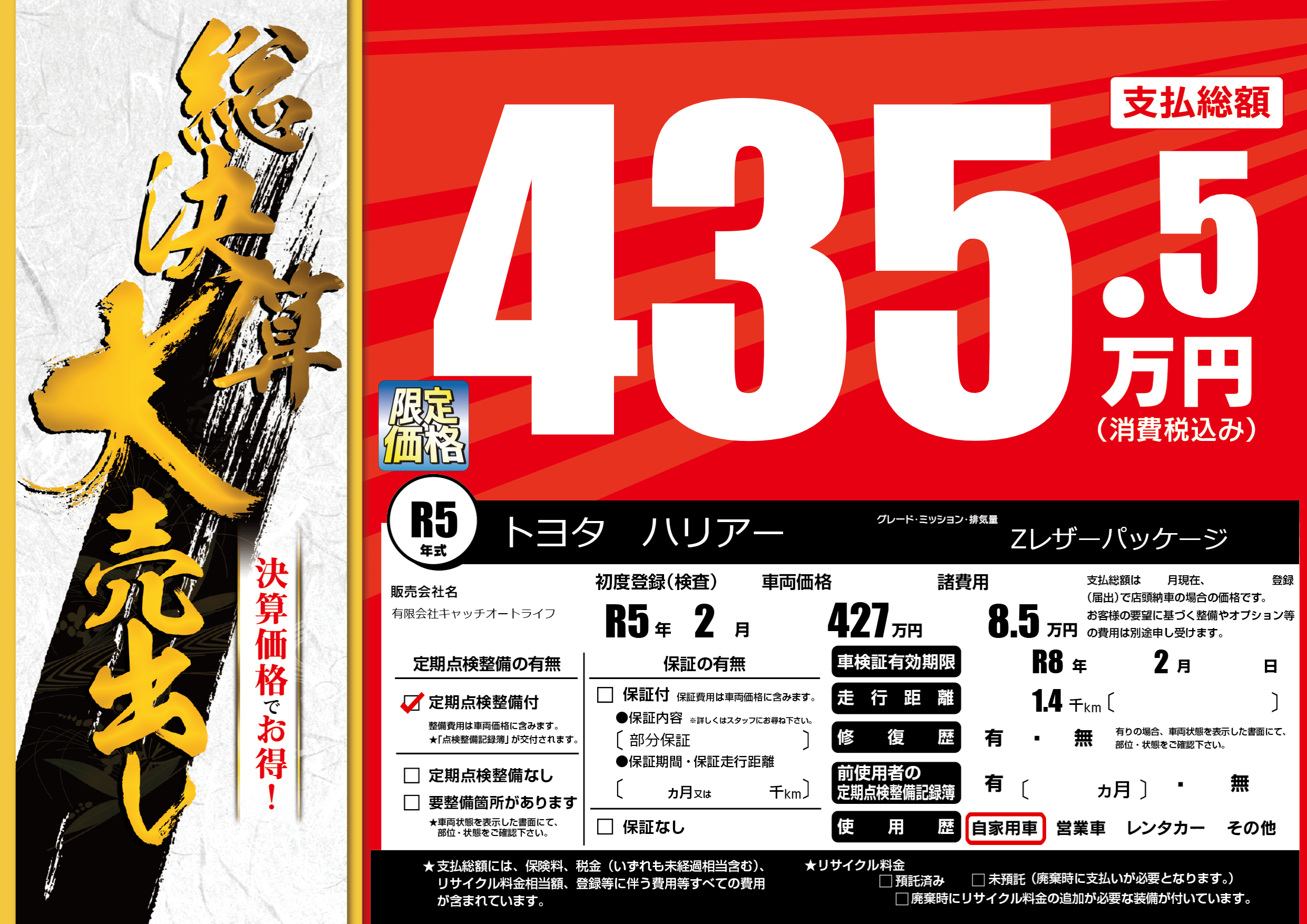 | 走行キロ | 0.1万km | 初年度登録 | R5年2月 |