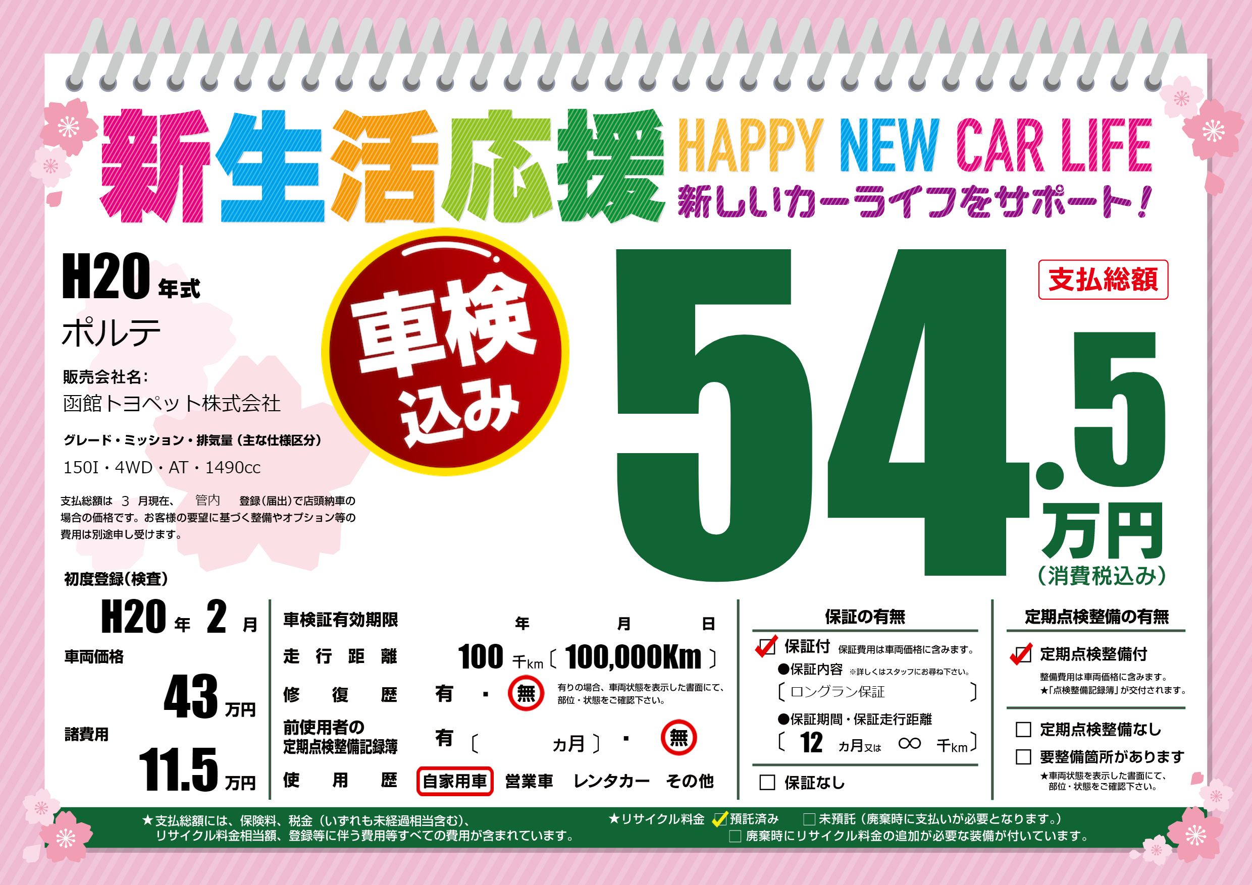 | 車名 | ポルテ | グレード ミッション 排気量 |