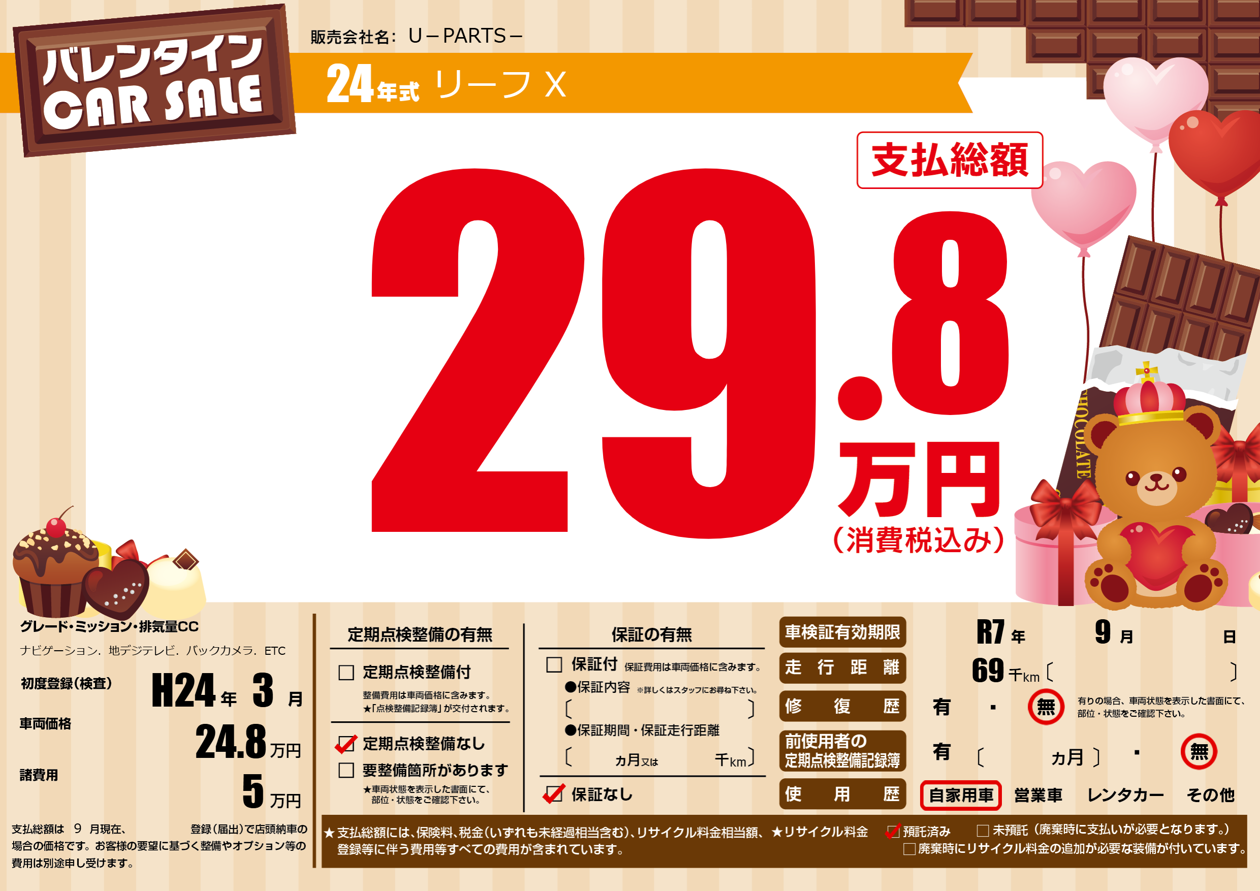 | 車名 | リーフ X | グレード ミッション 排気量 |