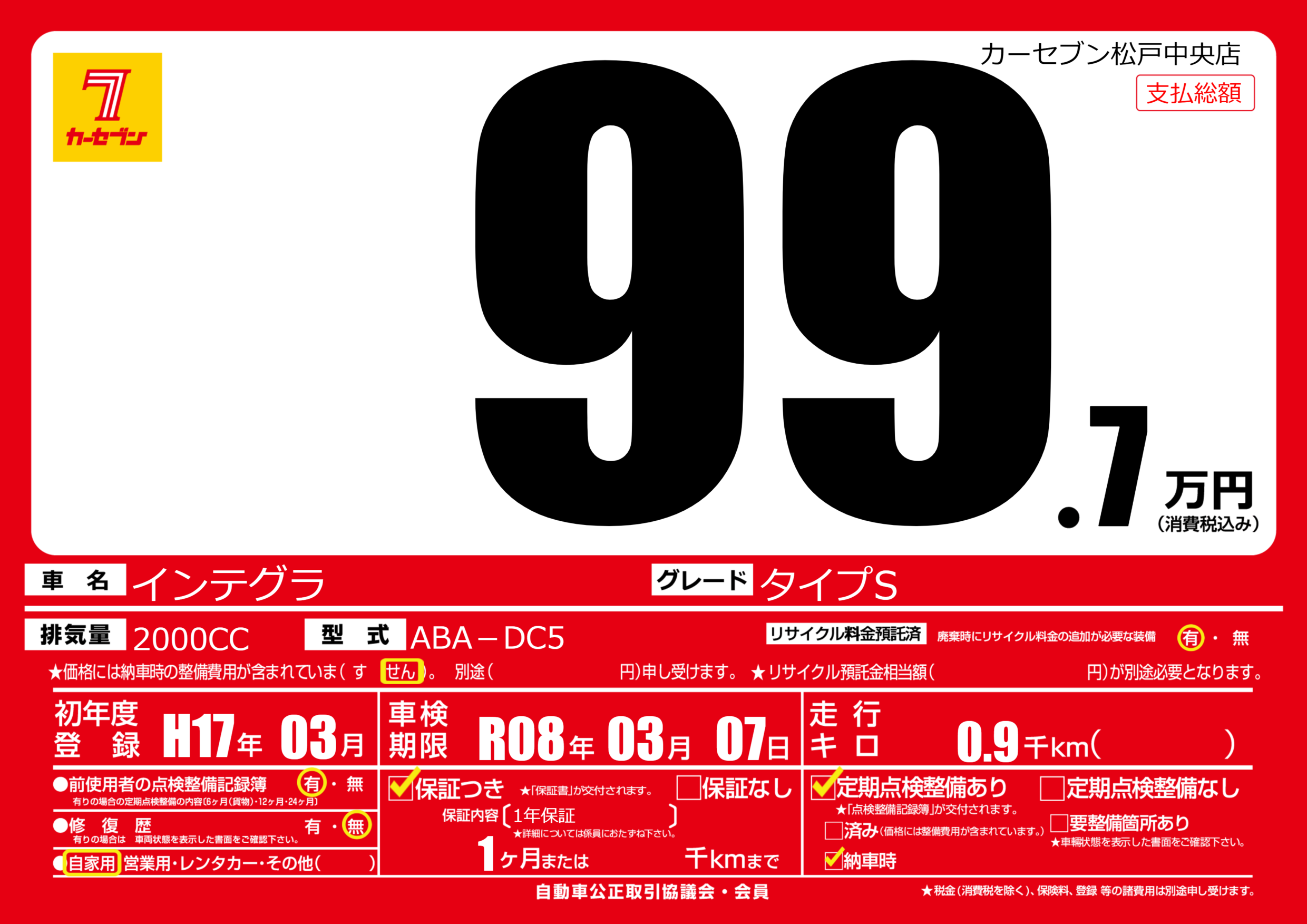 | 車検制限 | R08年 03月 07日 | ||