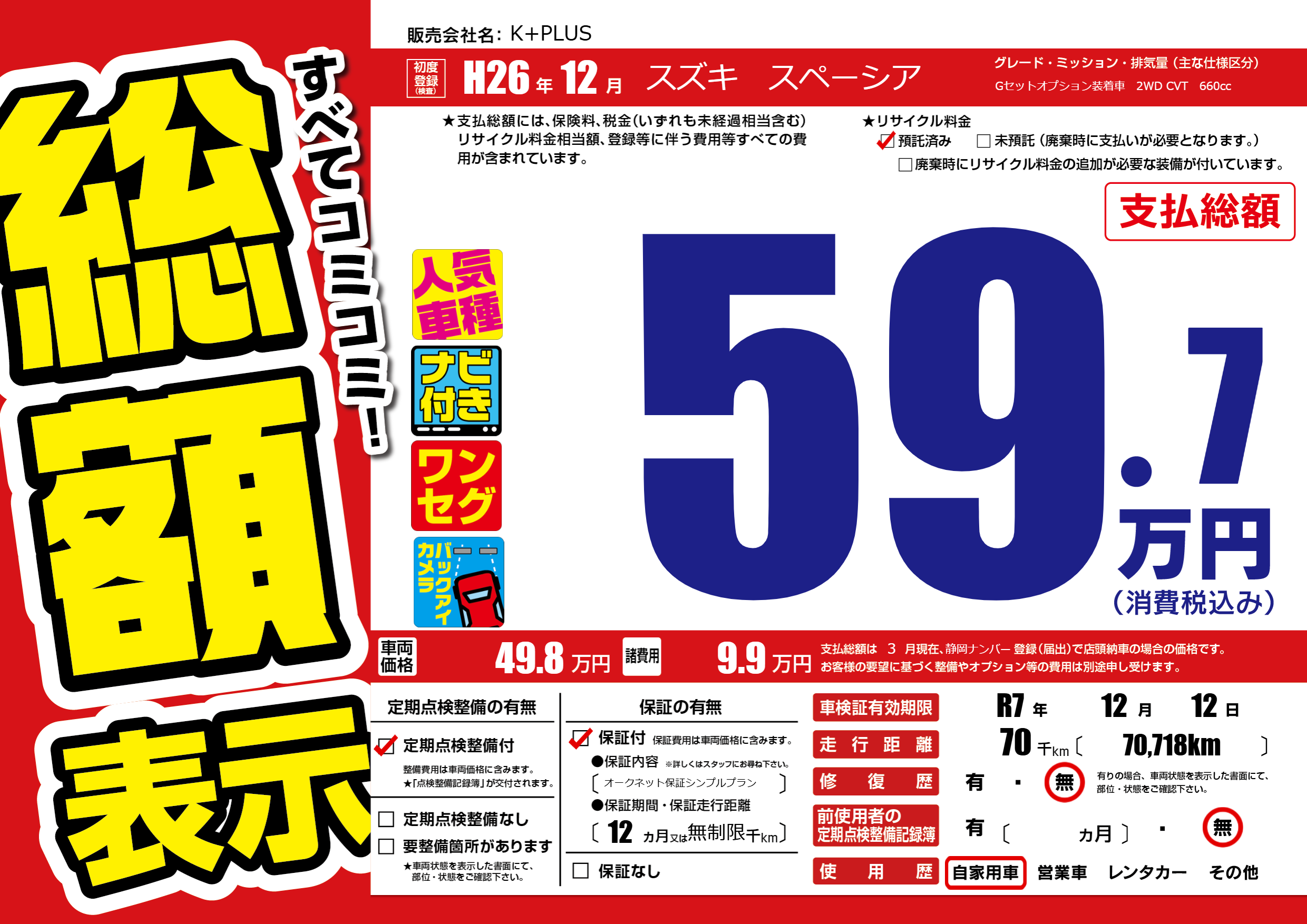 | 車検制限 | R7年 12月 12日 | ||