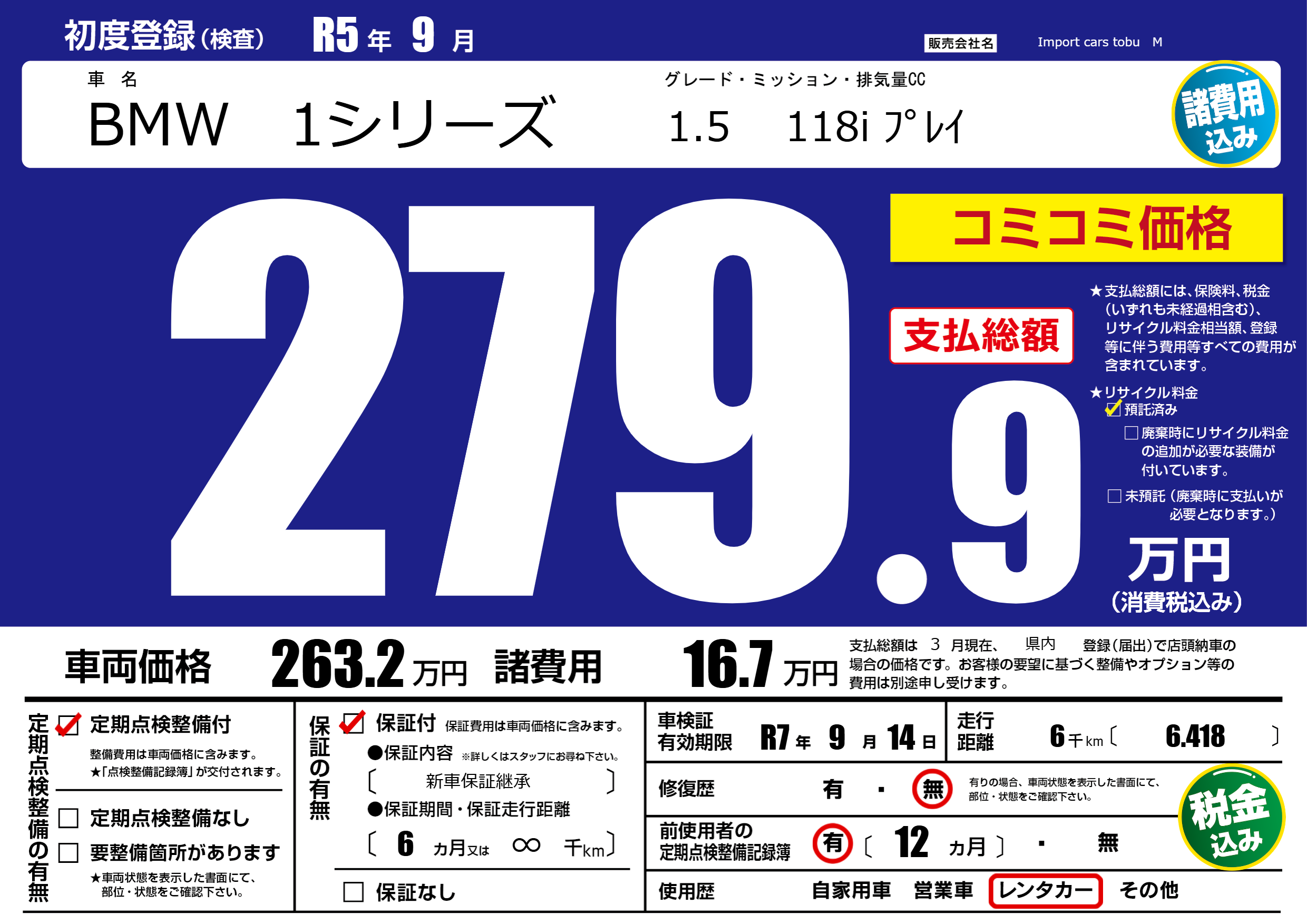 | 走行キロ | 0.6万km | 初年度登録 | R5年9月 |