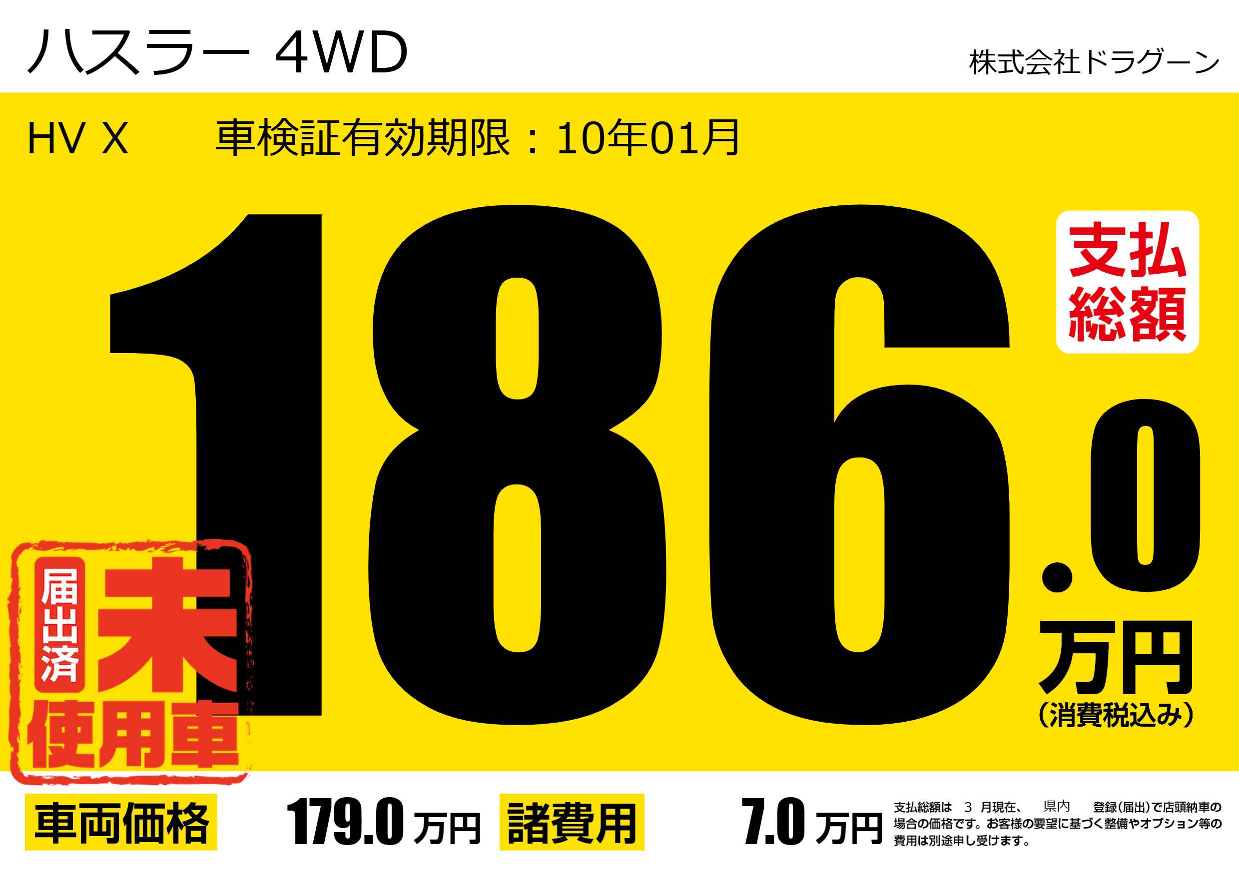 | 車名 | ハスラー 4WD | グレード ミッション 排気量 |