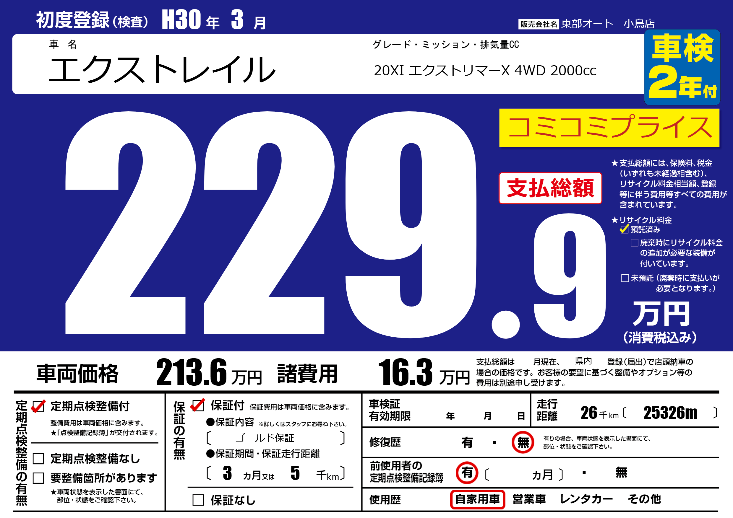 | 初年度登録 | H30年3月 | ||