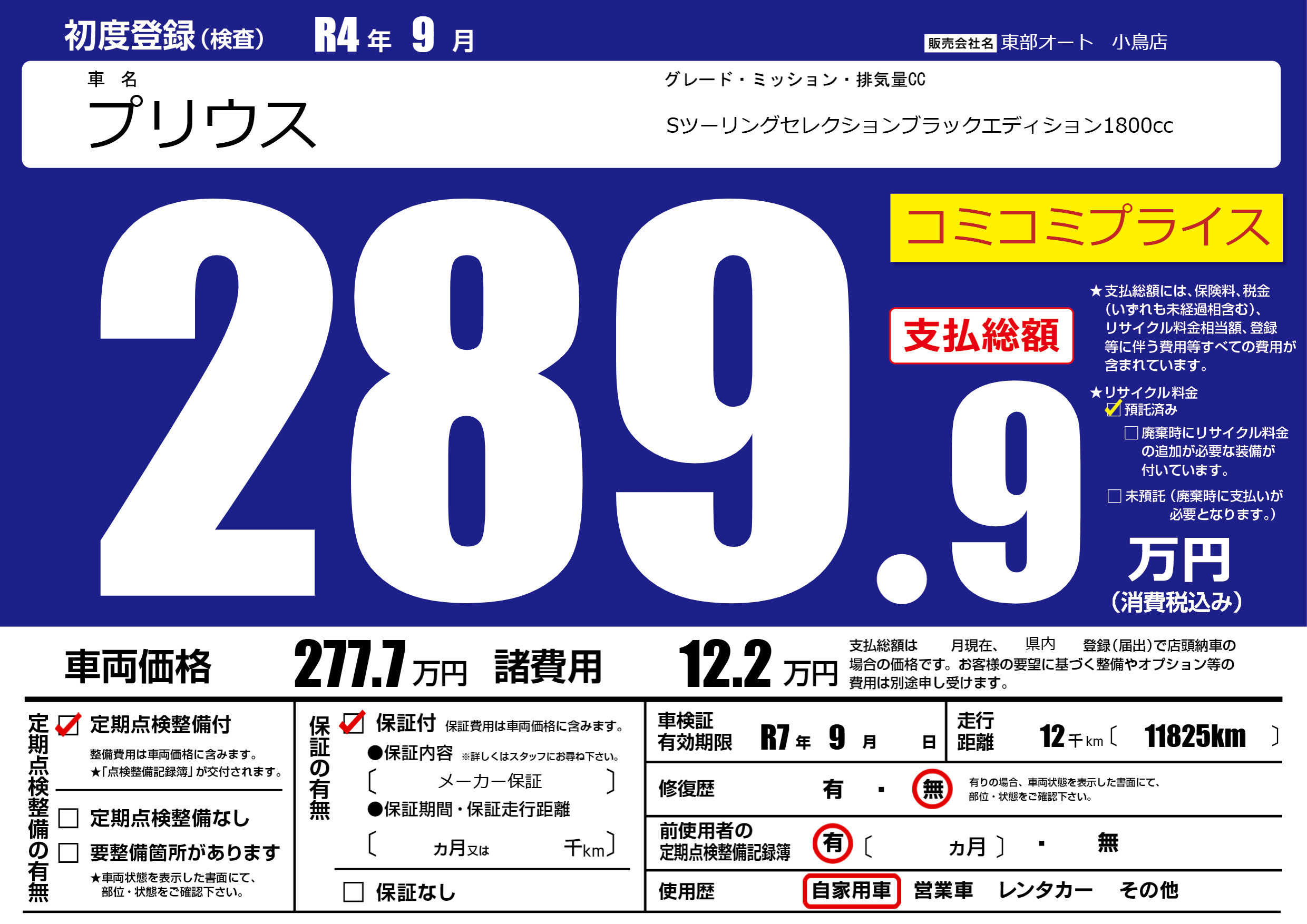 | 車検制限 | R7年 9月 - 日 | ||