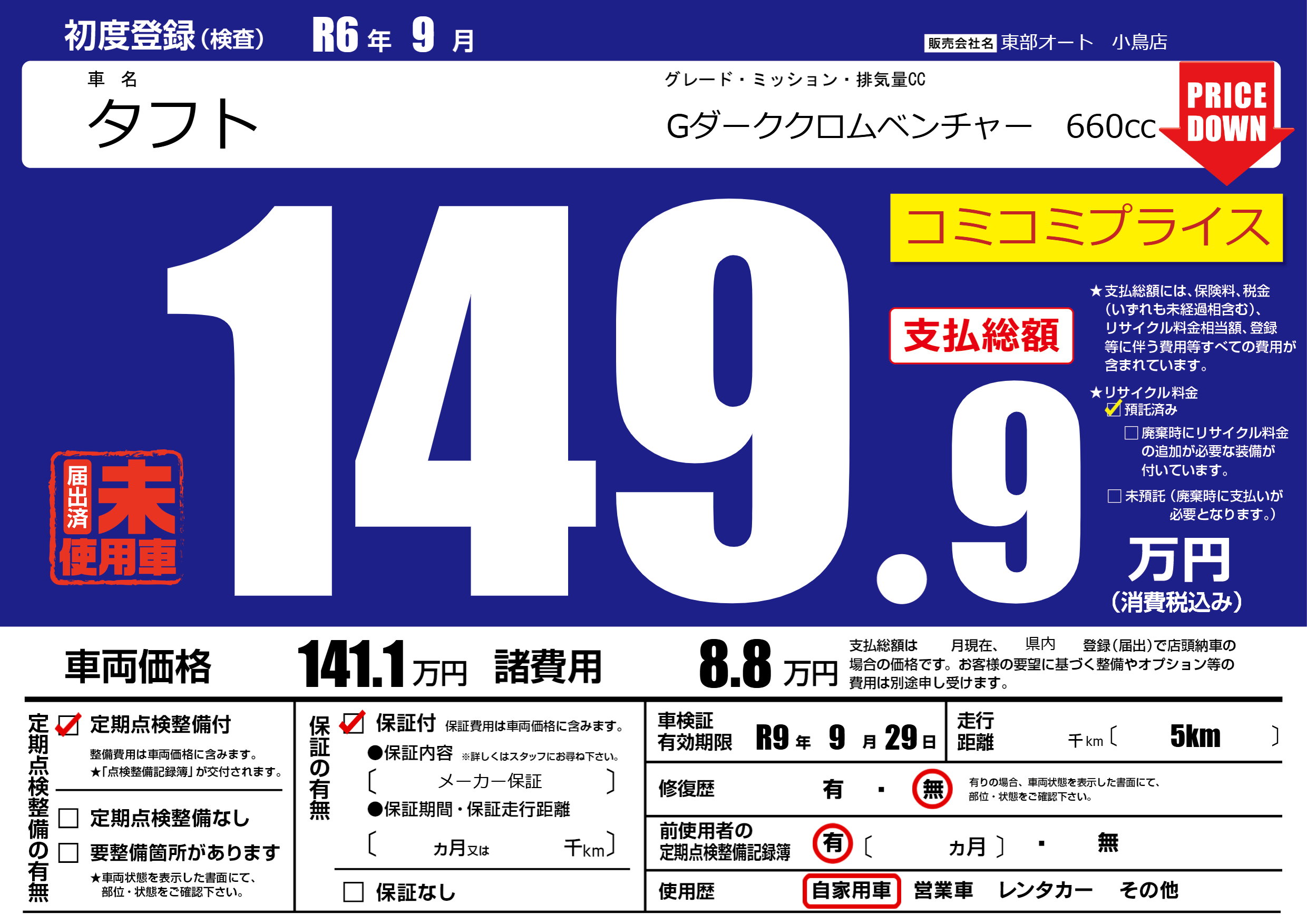 | 走行キロ | - | 初年度登録 | R6年9月 |