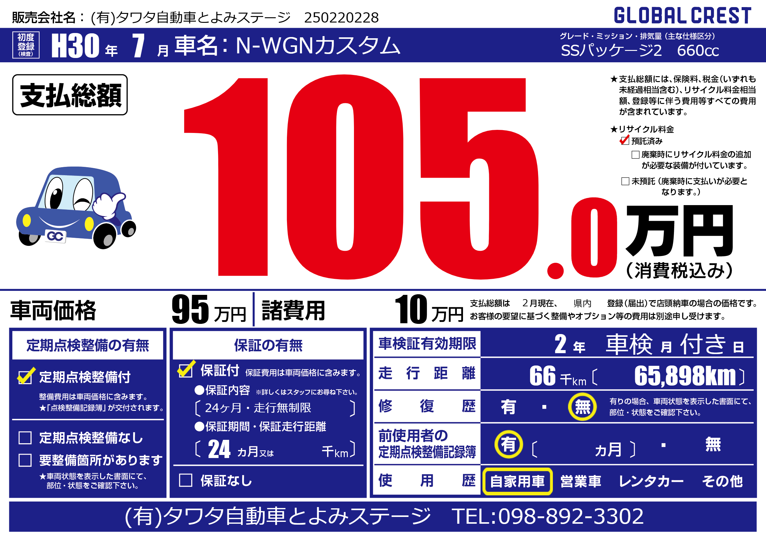 | 車名 | N-WGNカスタム | グレード ミッション 排気量 |